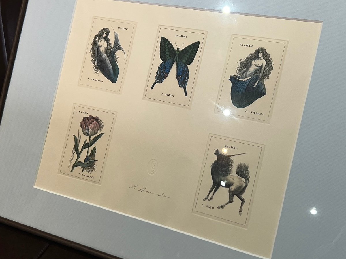 坂東壮一 銅版画 蔵書票 直筆サイン入り 5枚! 額入り 「博物誌」手彩色5葉セット 限定になります。