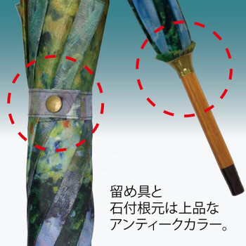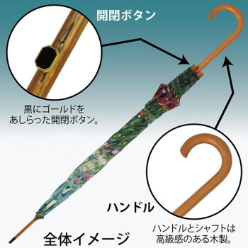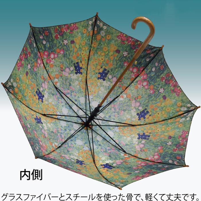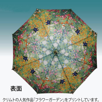 クリムトの作品「フラワーガーデン」をプリントした木製ジャンプ傘です。グラスファイバーとスチールを使った骨で、軽くて丈夫です。 |