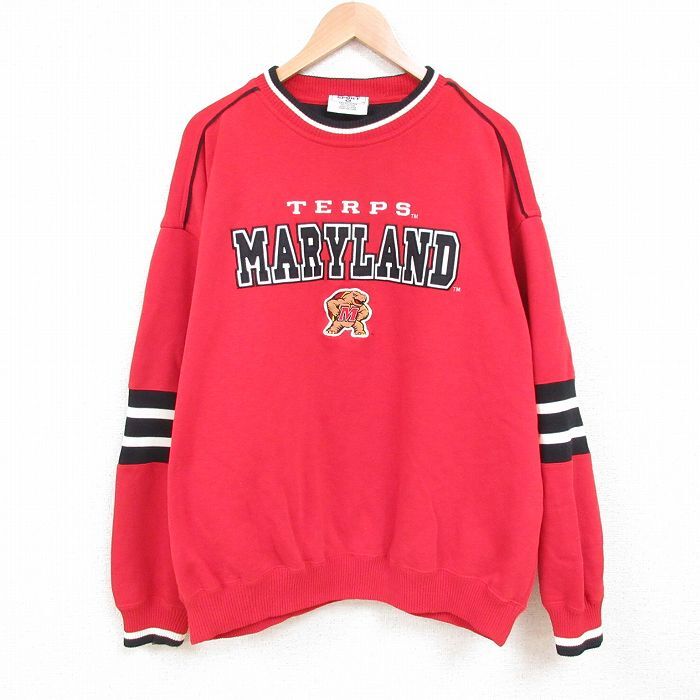 【商品名】 XL★古着 リー Lee 長袖 スウェット メンズ 00年代 00s メリーランド 刺繍 大きいサイズ クルーネック 赤