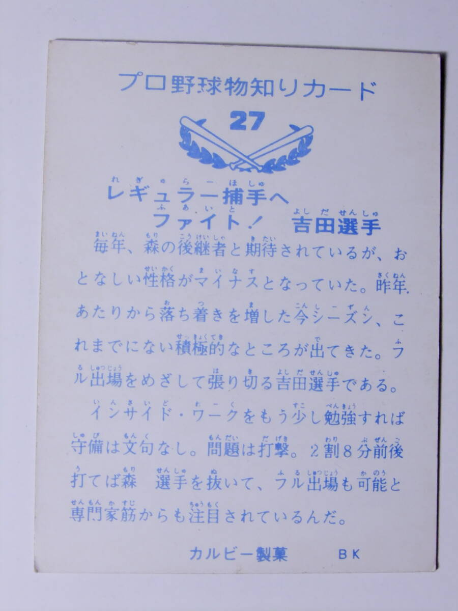 プロ野球カード・カルビー 73年 No27  吉田孝司 巨人です。