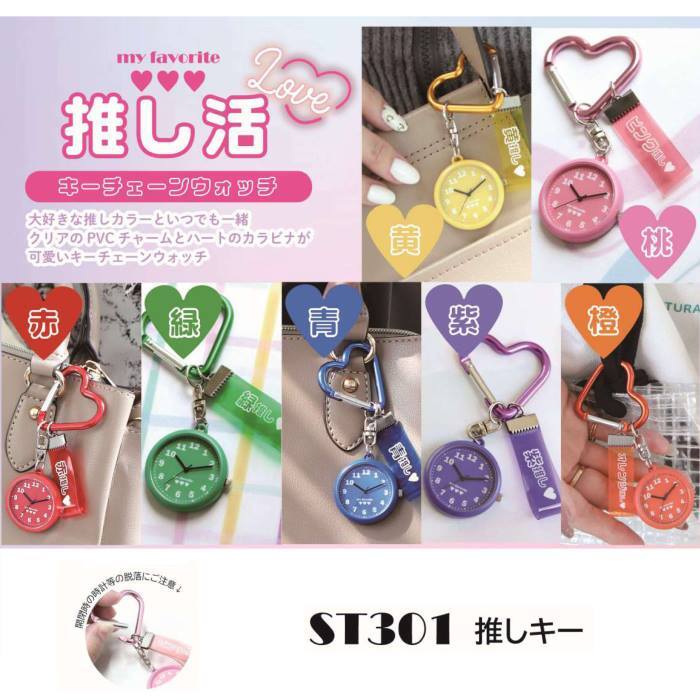 | 人気のカラビナキーチェーンハングウォッチです!! カラフルさに楽しさ、気分もアップしそうです。 バッグのチャームにもなる、ハングウォッチですので、外出先でも重宝します!! クリアのPVCチャームとハート型カラビナが可愛く、カラーリングが美しいモデルです♪ お子様、お母様やお祖母様へのプレゼントにいかがですか♪ |