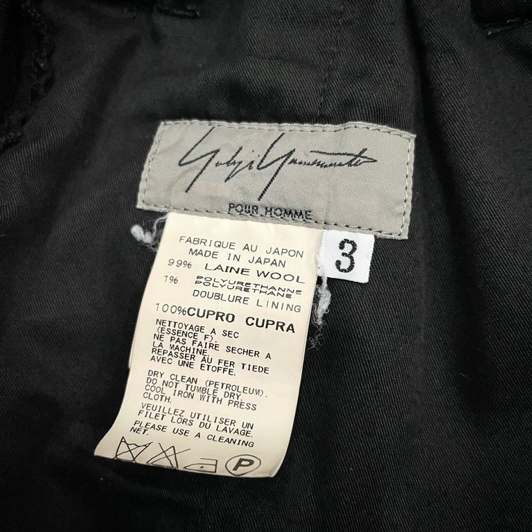 仕様 | ブランド名:Yohji Yamamoto Pour Homme 色:ブラック 素材:ウール ポリウレタン キュプラ 生産国:日本 サイズ:3 ※付属品については特記なき限り画像にあるものが全てとなります ※画像のカラーのイメージとお客様のイメージがお使いのモニターや環境により異なる場合がございます |