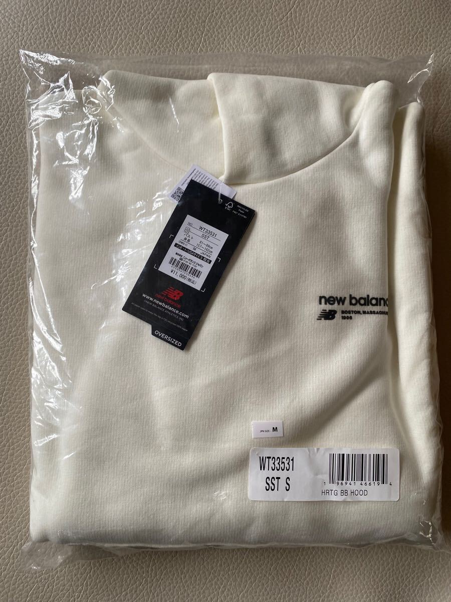 Linearロゴをミニマルなデザインに仕上げたNB Essentialsの裏起毛スウェットフーディー。