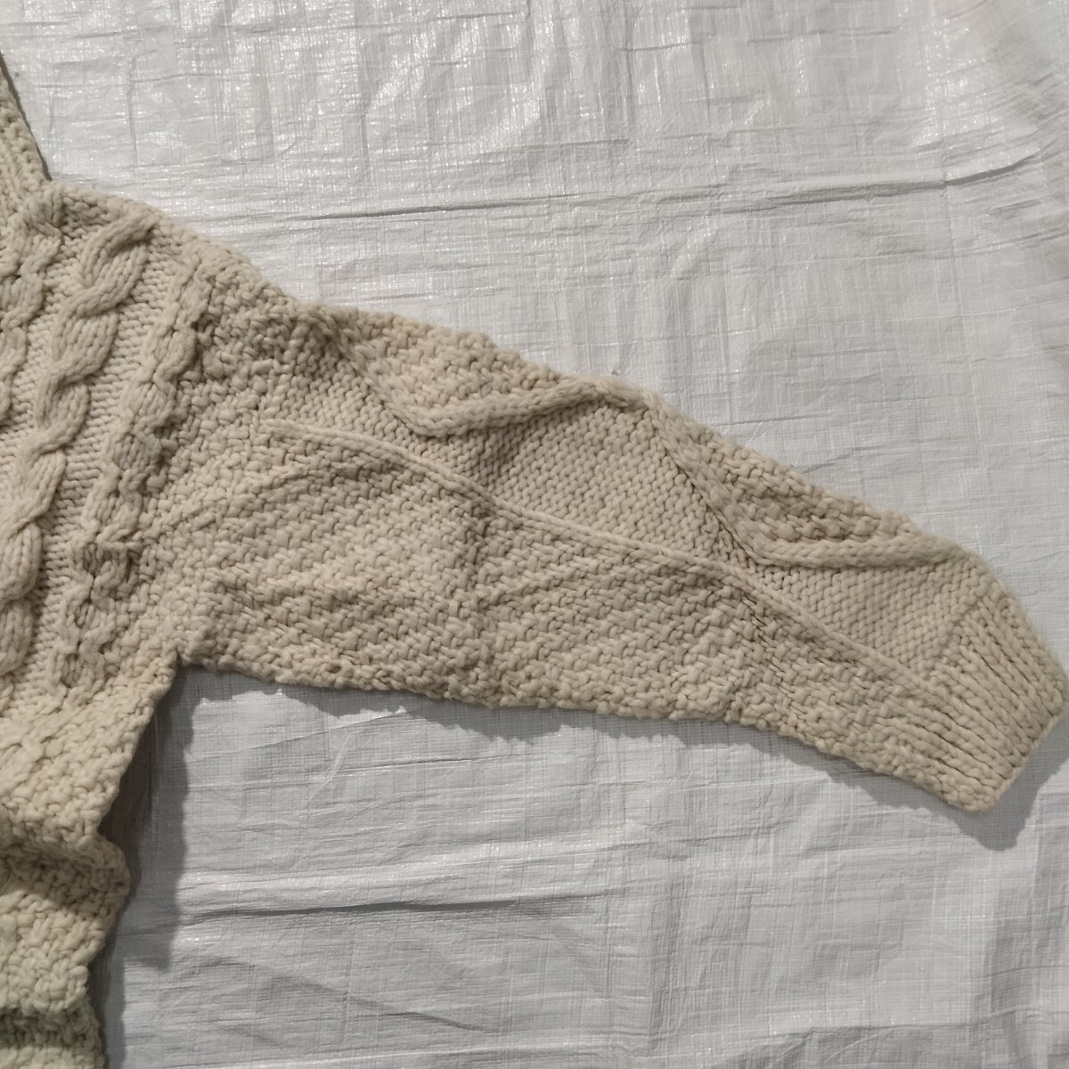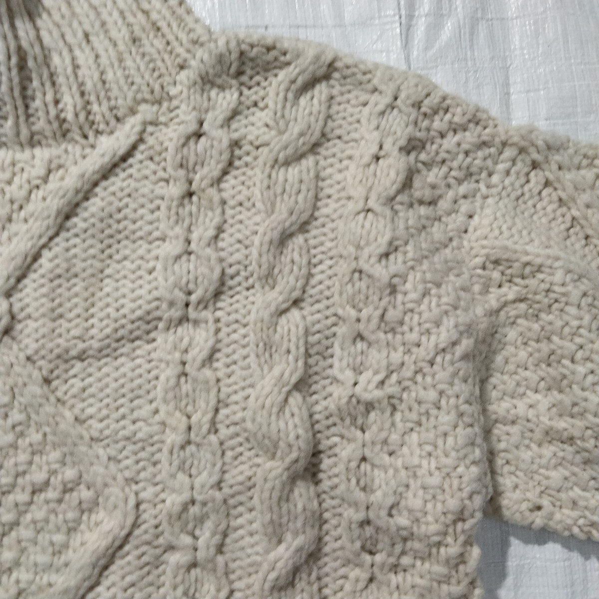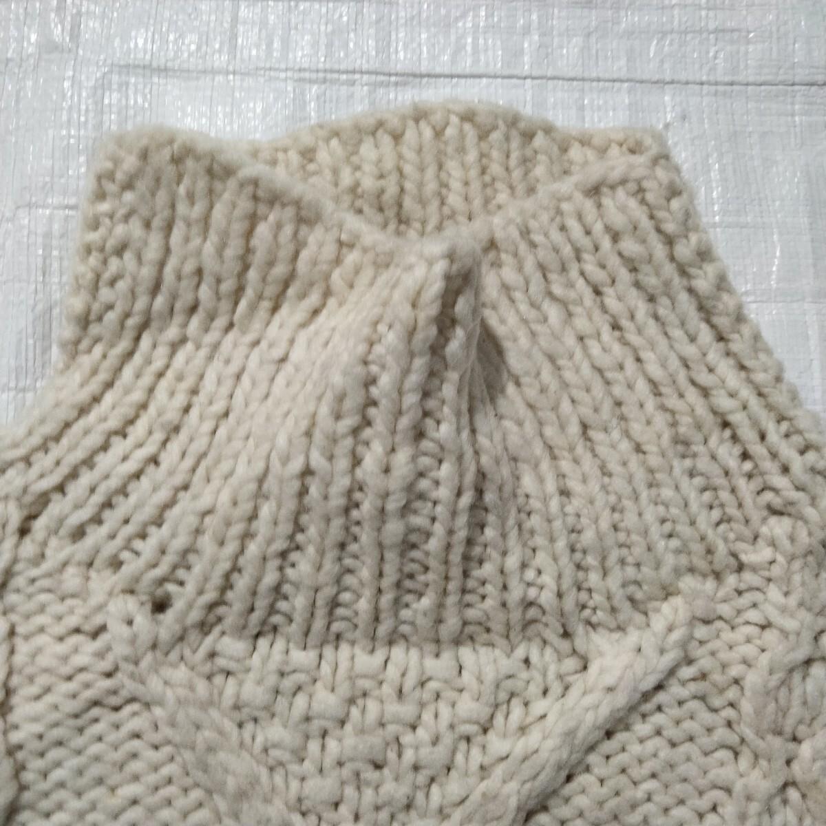 ウール100% 立体編み12cmハイネック。ドロップショルダー セットイン。