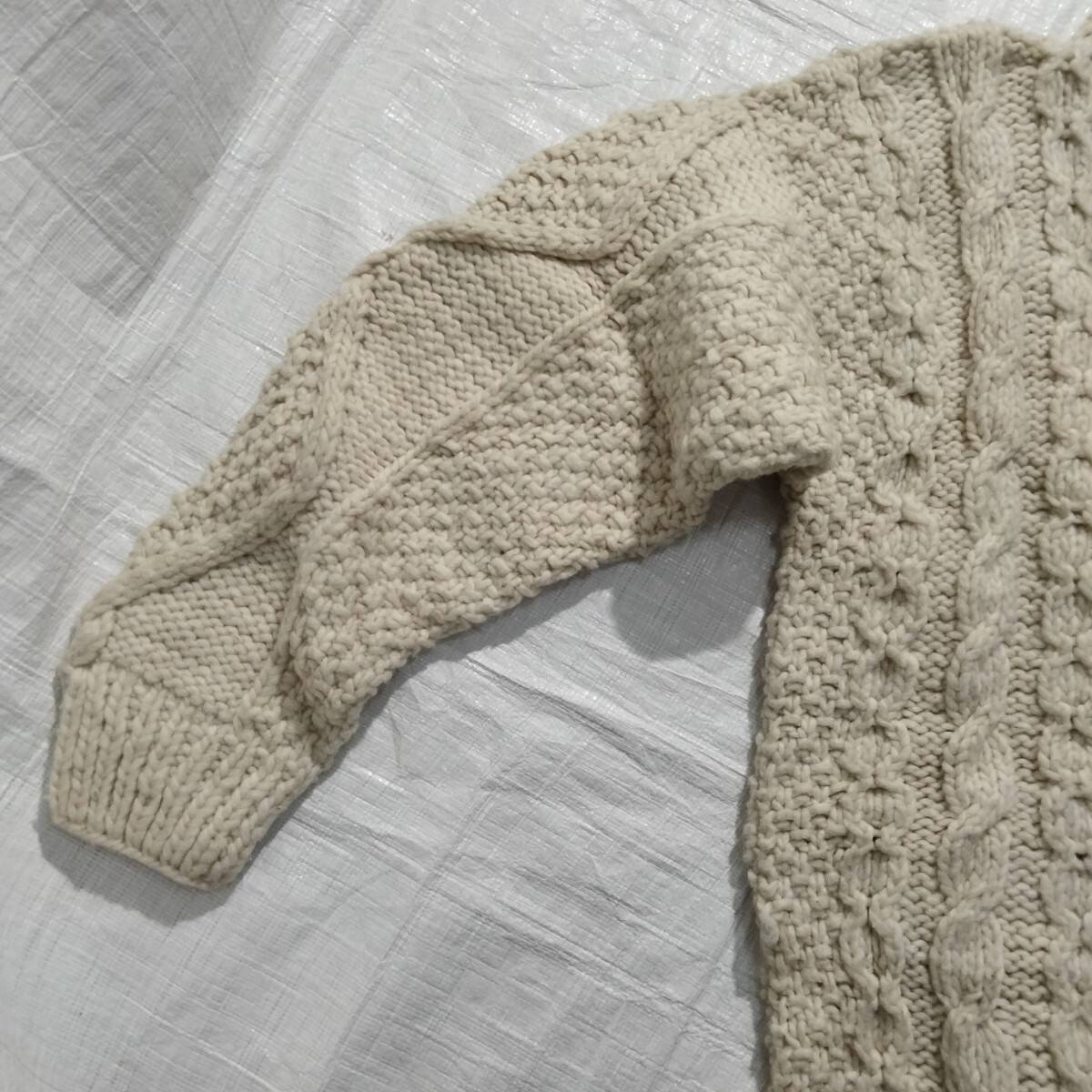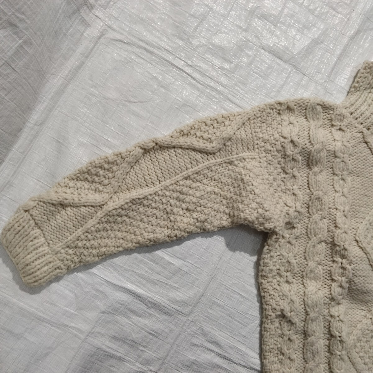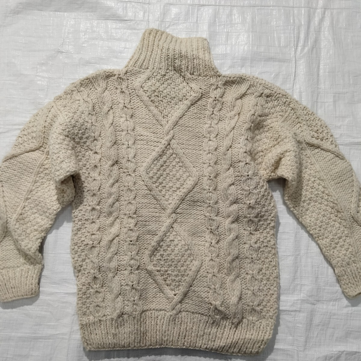 ウール100% 立体編み12cmハイネック。ドロップショルダー セットイン。