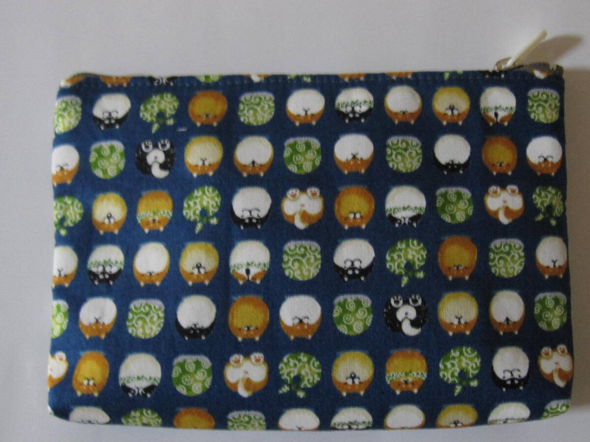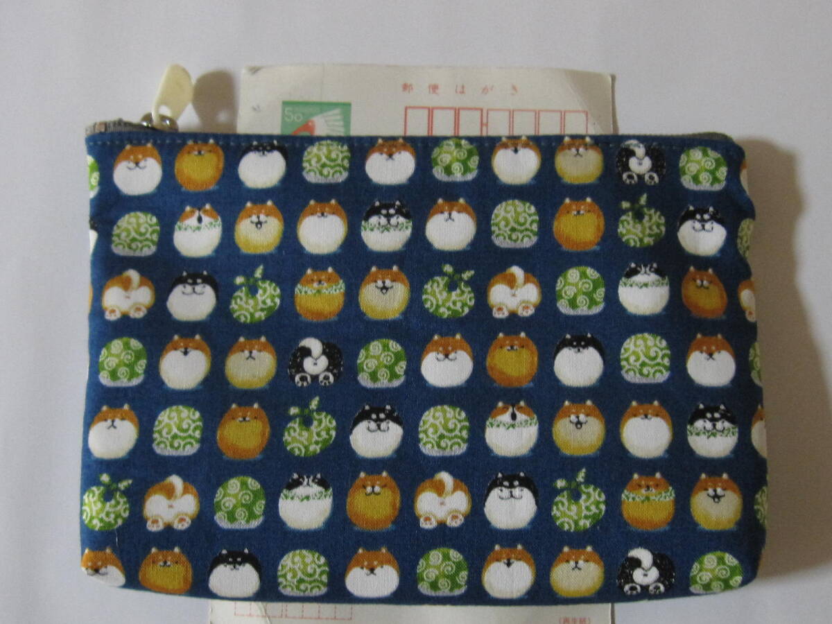 手作り 大 ポーチ 柴犬 饅頭 模様 唐草 犬柄 動物 格安 ハンドメイド 財布 小物 手芸 充電器 眼鏡 男女兼用 コン 可愛 お洒落 綿 濃紺 幅広