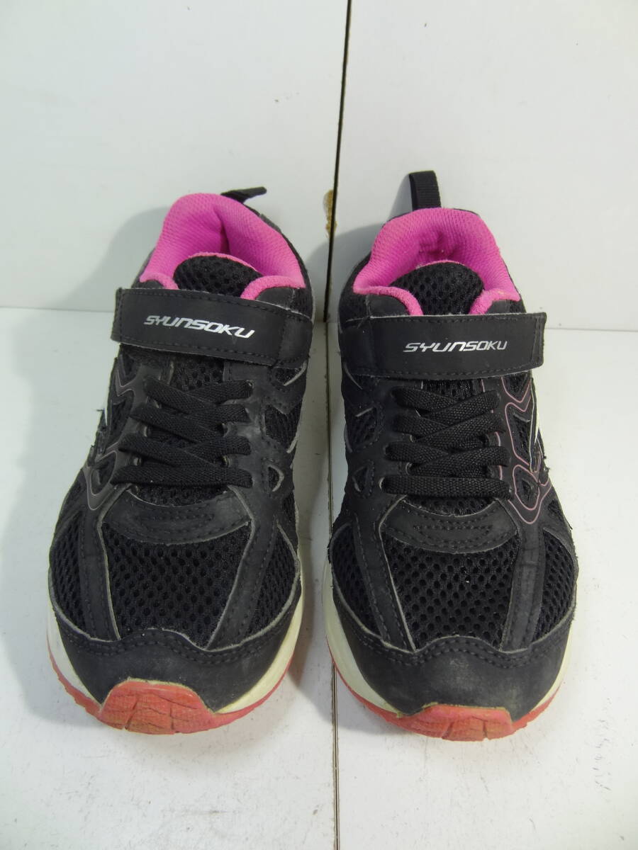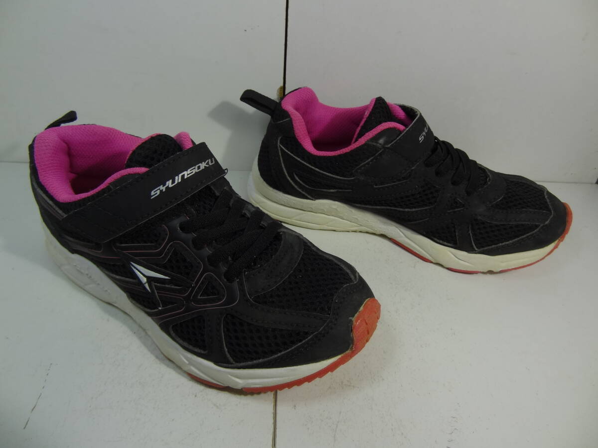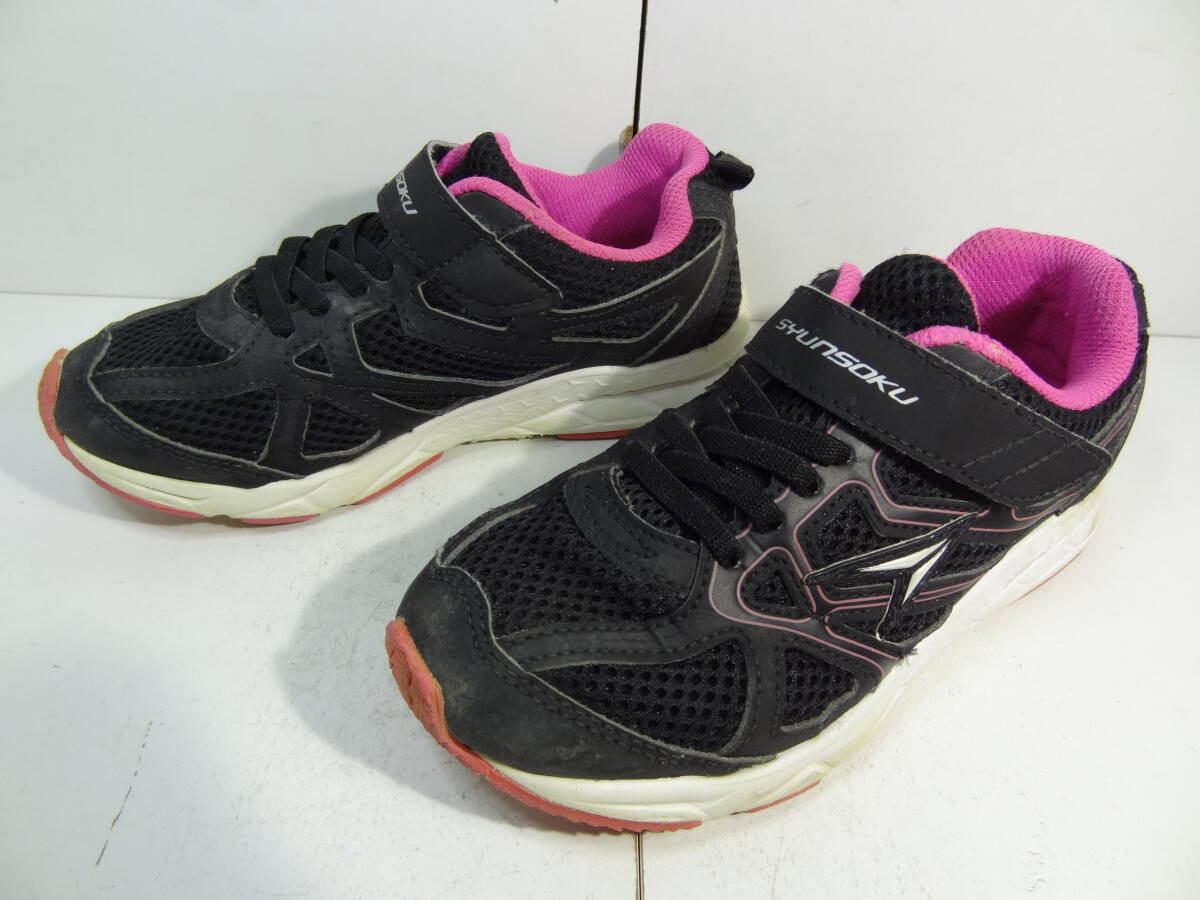 全国送料無料 SYUNSOKU 瞬足 シュンソク アキレス製 子供靴キッズ女の子黒Xピンク色 S-WIDE 幅広 ランニングスニーカーシューズ 20cmEEE