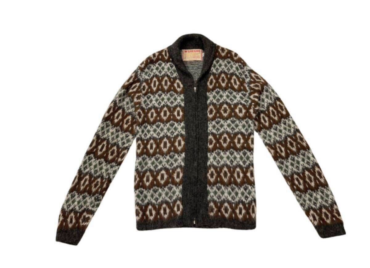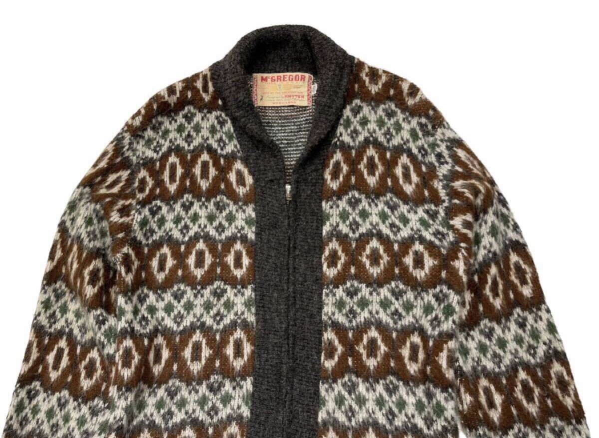 こちらの商品は、USA製 50s 60s McGREGOR LAND OF MIDNIGHT SUN Designed by KNUTON 総柄 フルZIPニットカーディガン です。