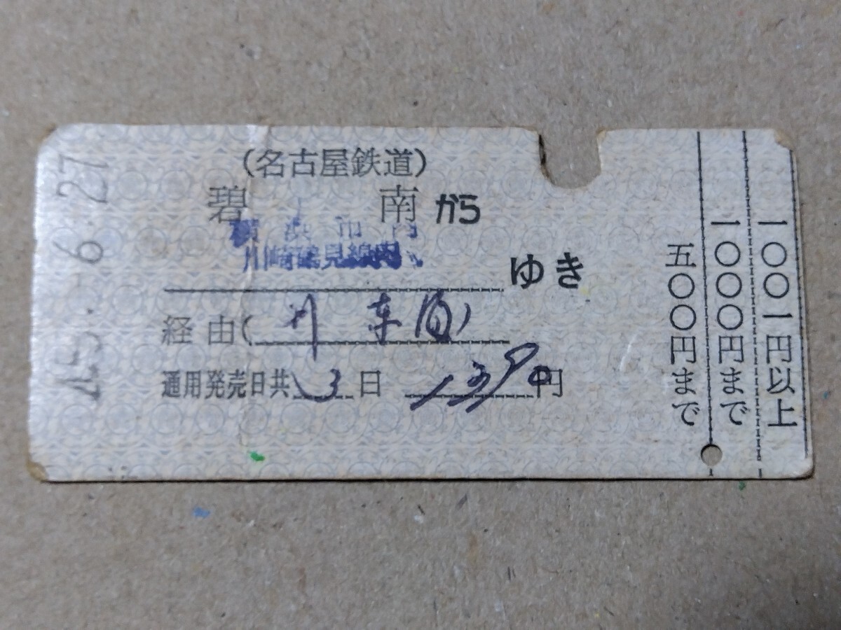 250314-94【名古屋鉄道きっぷ】硬券 碧南→横浜市内・川崎鶴見線内 片道乗車券 国鉄連絡 昭和45年