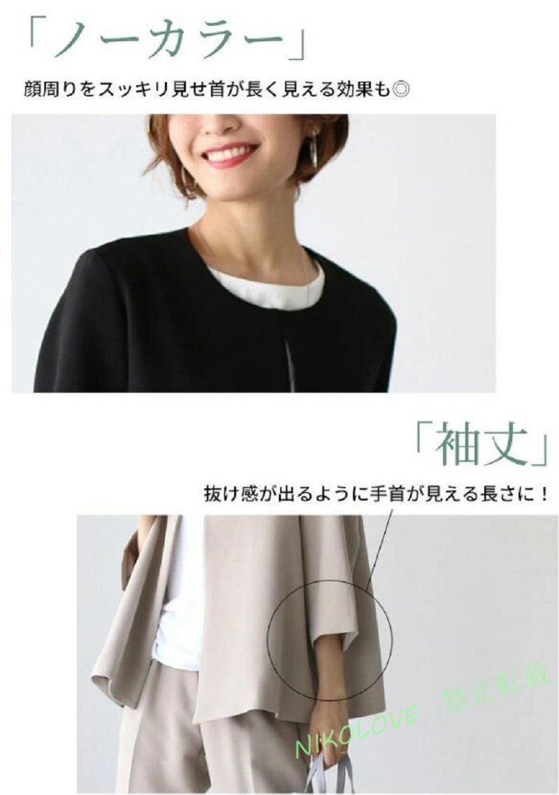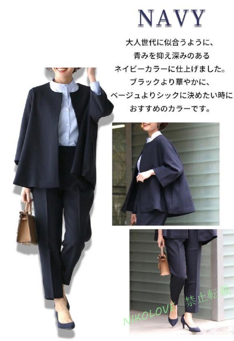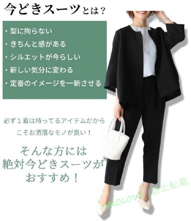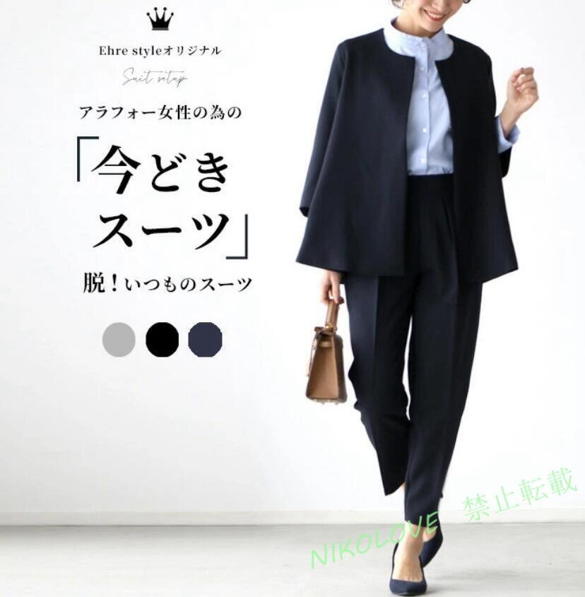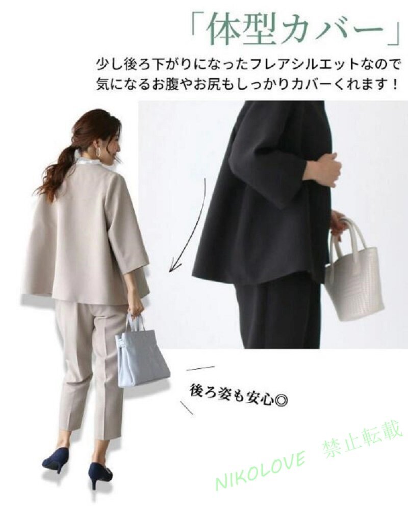 ベージュ、定番黒パンツスーツです。卒業入学に使えますね!!ジャケットは裏地つきでAラインです。パンツは後ろゴムで、ゆったりしています。