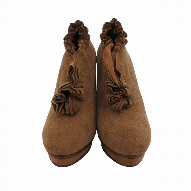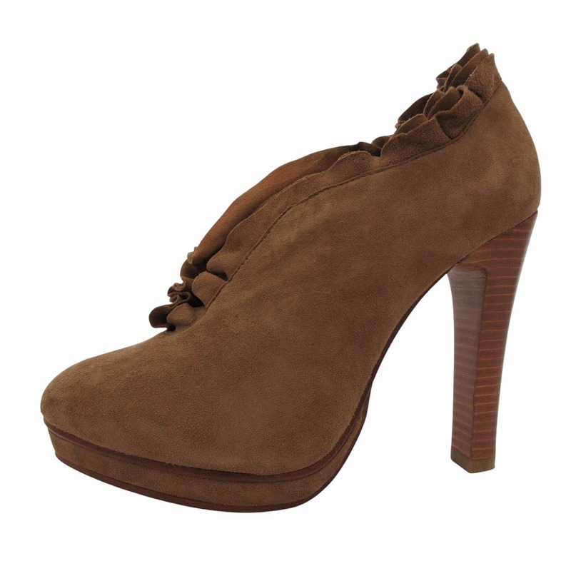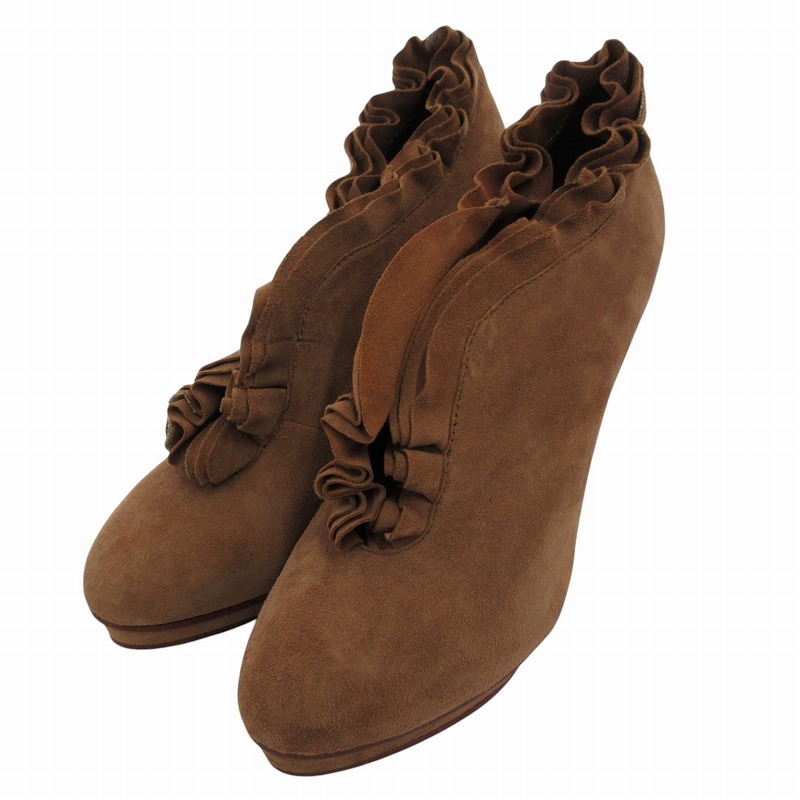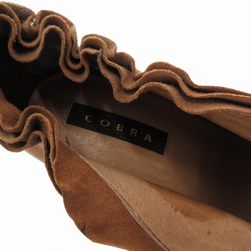 コブラ COBRA ブーティ ヒール スエード フリル 37 茶 ブラウン /FF レディース