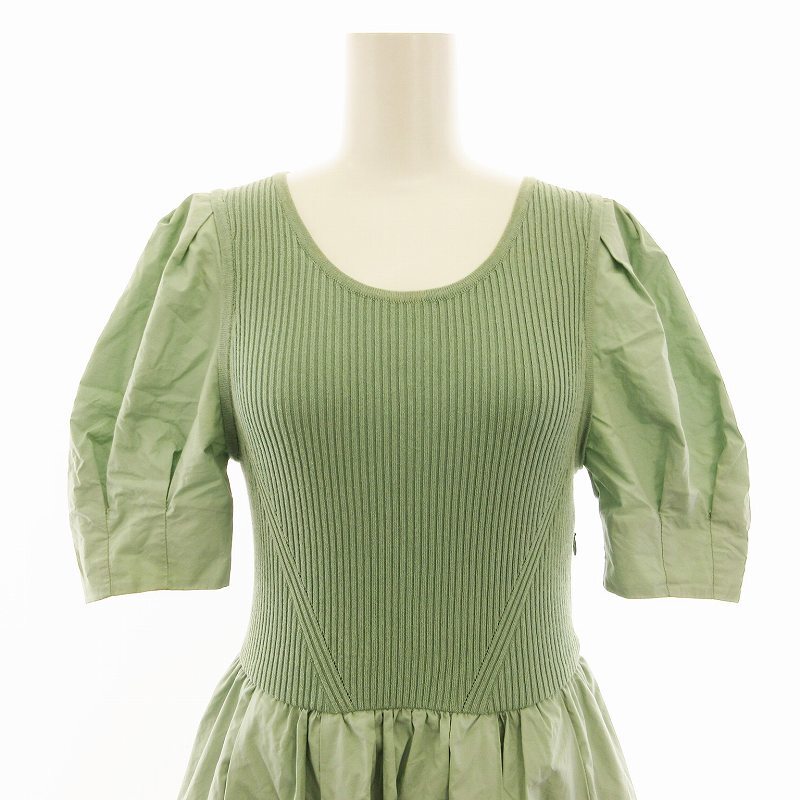 フレイアイディー FRAY I.D ニットコンビフレアーワンピース ロング 半袖 0 緑 グリーン FWNO221057 /EE レディース