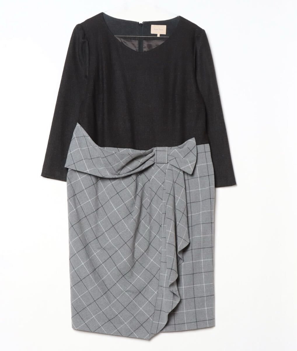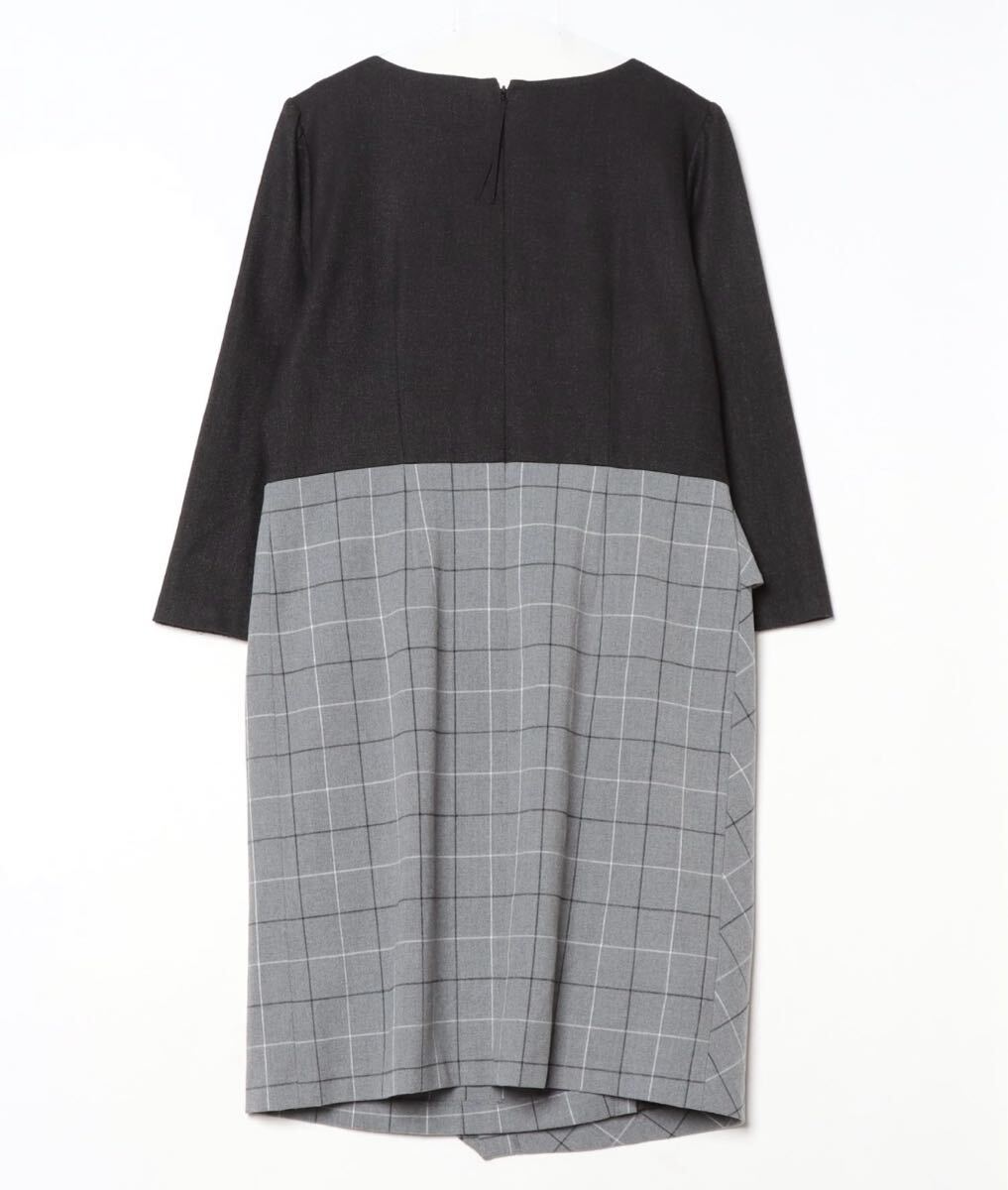 シンプルなブラックとチェック柄のコントラストが魅力的なひざ丈ワンピース。