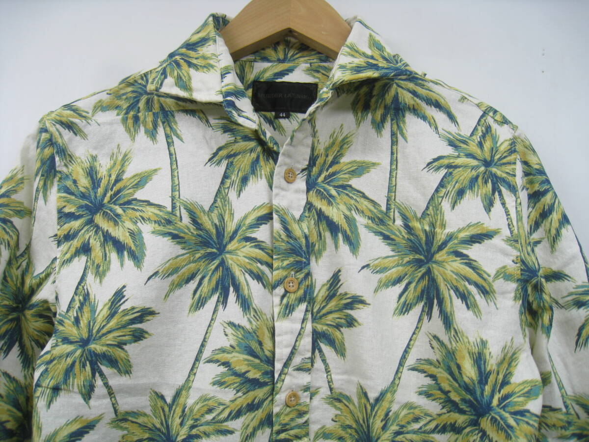 MURDER LICENSE マーダーライセンス シャツ 長袖 麻混 ヤシ ヤシの木 総柄 アイボリー サイズ44