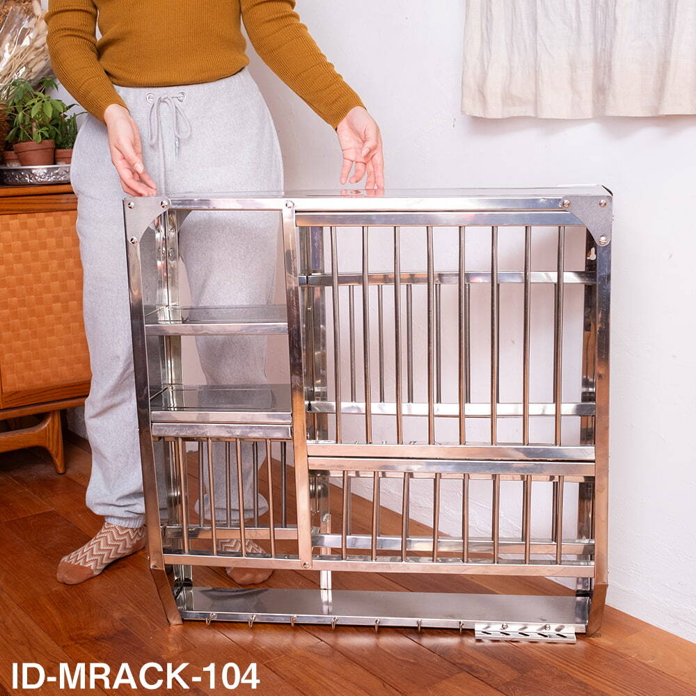 | おことわり | こちらの商品は昔ながらの製品の為、パーツが全体的にかなりインドクオリティな作りをしています。写真のような歪み、部分的な変色、穴あけパンチした後のバリが残っているなどがございます。作りの甘い箇所は、大体は完成後に見えなくなるところが多いですが、歪みをペンチで修正したり、残ったバリは先端の尖ったマイナスドライバー等で押し出し、ペンチで切ったりと組み立てに気合が必要な商品となります。また、部分的に歪みが出る場合があり、力を入れて歪みを矯正することが必要がことがございます。全体的な歪みを修正する為にも、ネジは仮どめをして、最後に本締めをするのを推奨しております。棚小につきましては、元々の仕様でベコベコしておりますが、棚に取り付けると修正されます。精度に関してはどうしても甘い傾向にあります。ご了承のうえお買い求めください。また、棚の縁や格子パイプの先端などはとても鋭利なので、怪我をしないよう切れにくいグローブを着用ください。 |