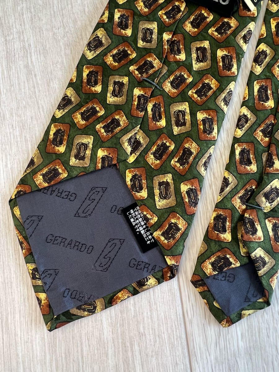 緑色の背景に金色と黒の模様が特徴的なGERARDOのネクタイ。