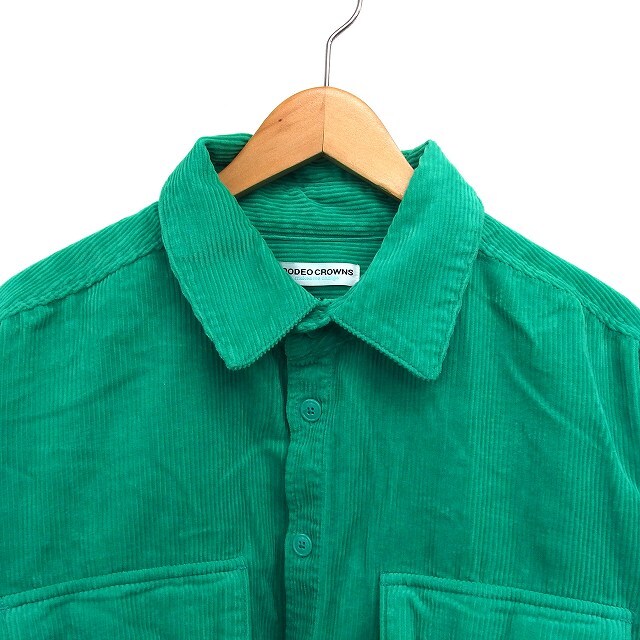 ロデオクラウンズ Rodeo Crowns コーデュロイ ステンカラー シャツ カジュアル ロゴ コットン 綿 長袖 L 緑 グリーン /NT6 メンズ