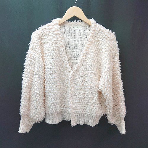 ◇ Earth music & ecology 起毛 カジュアル 個性派 長袖 ニット カーディガン サイズF アイボリー レディース E