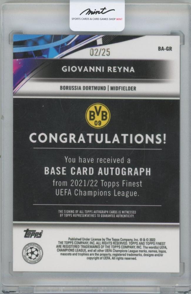 【GIOVANNI REYNA(Borussia Dortmund)】2021-22 TOPPS Finest UEFA Champions League Autographs Orange Refractors[02/25]