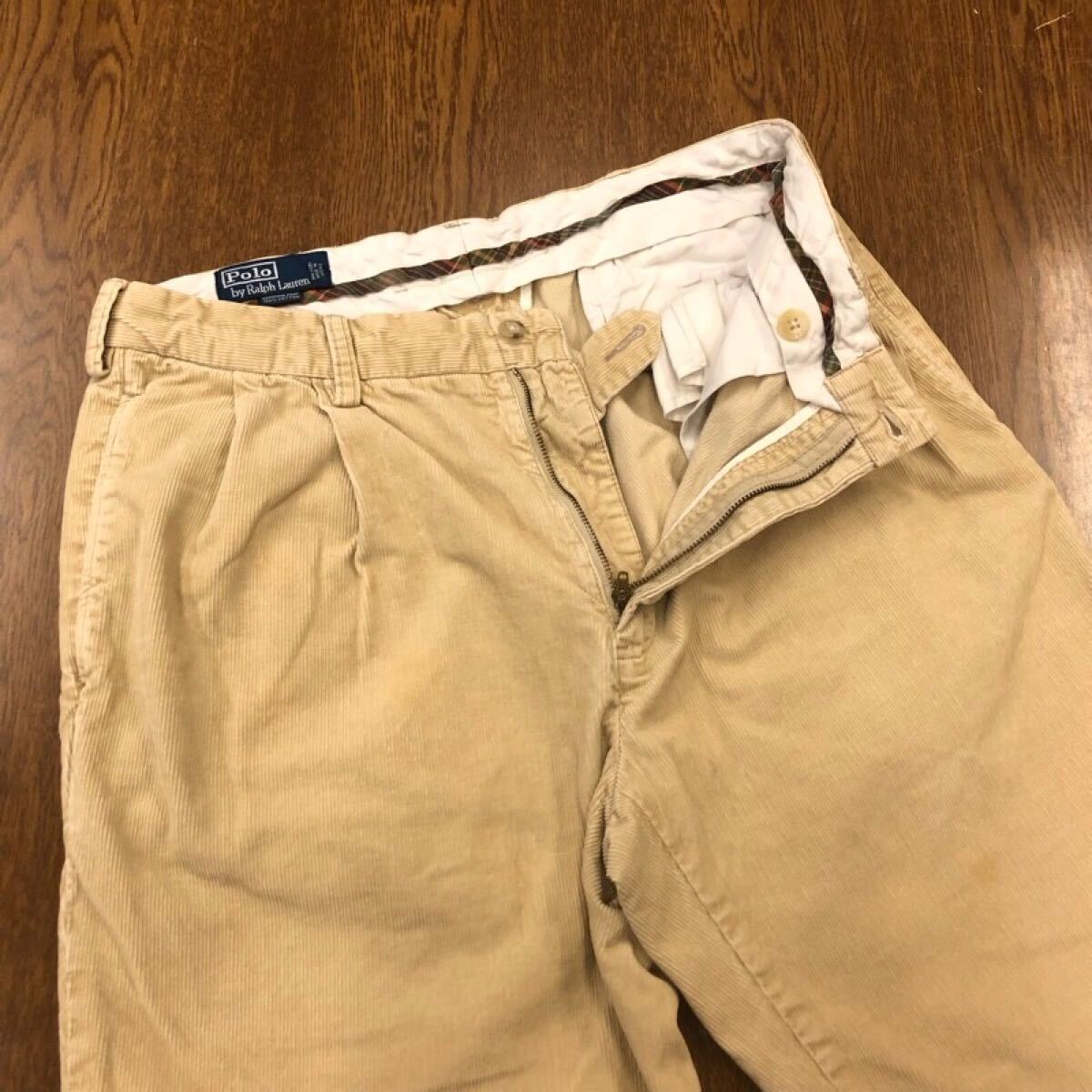【GA110】POLO by Ralph Lauren W34 L32 ツータック 裾折り返し コーデュロイパンツ ベージュ ブランド古着 ポロ ラルフローレン 送料無料