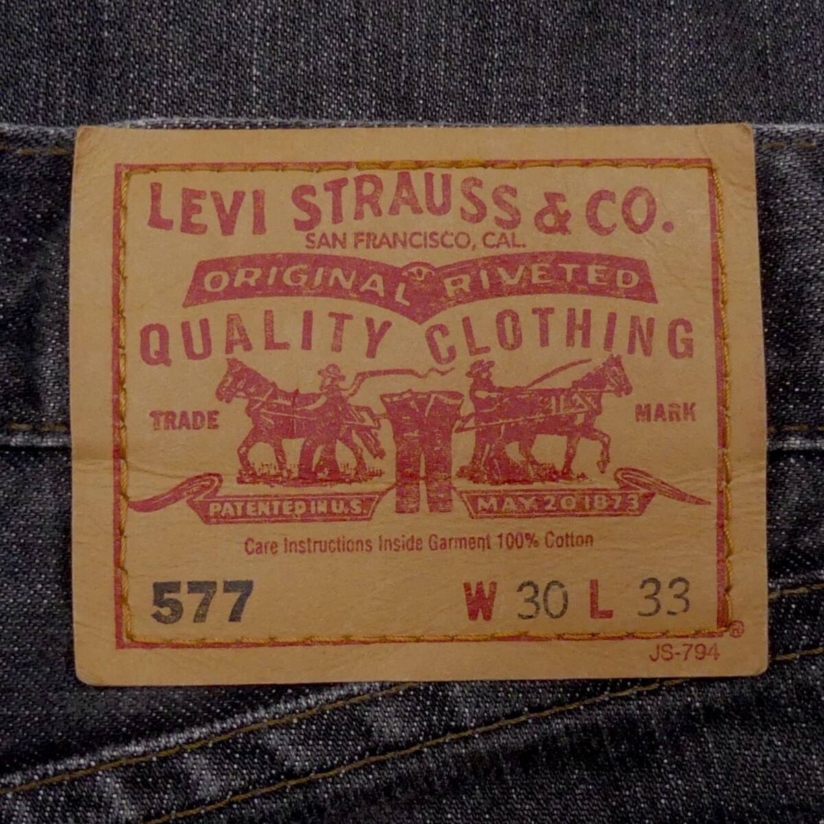 即決★日本製 リーバイス577★W30 廃盤 ローライズブーツカット ブラックデニム 黒 ジーンズ Levis メンズ フレア 鬼ヒゲ デニム 限定