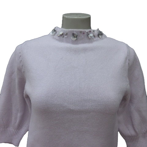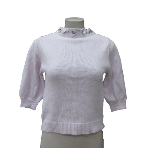 スナイデル SNIDEL ニット セーター ビジュー ラインストーン 七分袖 F ピンク /MS レディース