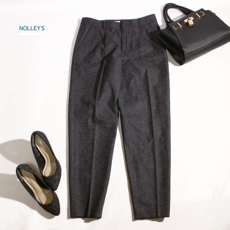 美品 ノーリーズ NOLLEY'S 秋 冬 毛99% 千鳥柄 ウールパンツ スラックス 7号 36 グレー ブラック 黒 通勤 オフィス 綺麗め フォーマル