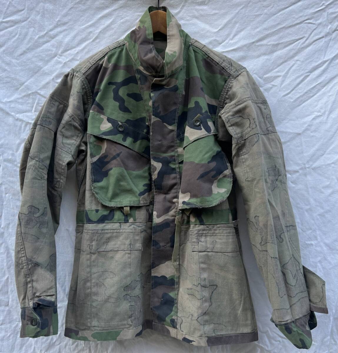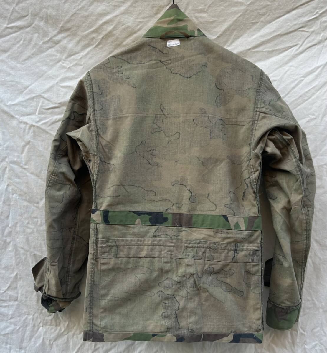 他国のカモ柄のフィールドジャケットと比べデザイン製や機能性が富んだ一枚。ポケット多数、エポレットも独自な感じで非常に面白いもの。ざっくり羽織ってもらうと可愛いと思います。ウエストのドローコードをキュッと絞ってあげるとまた違った雰囲気になります。