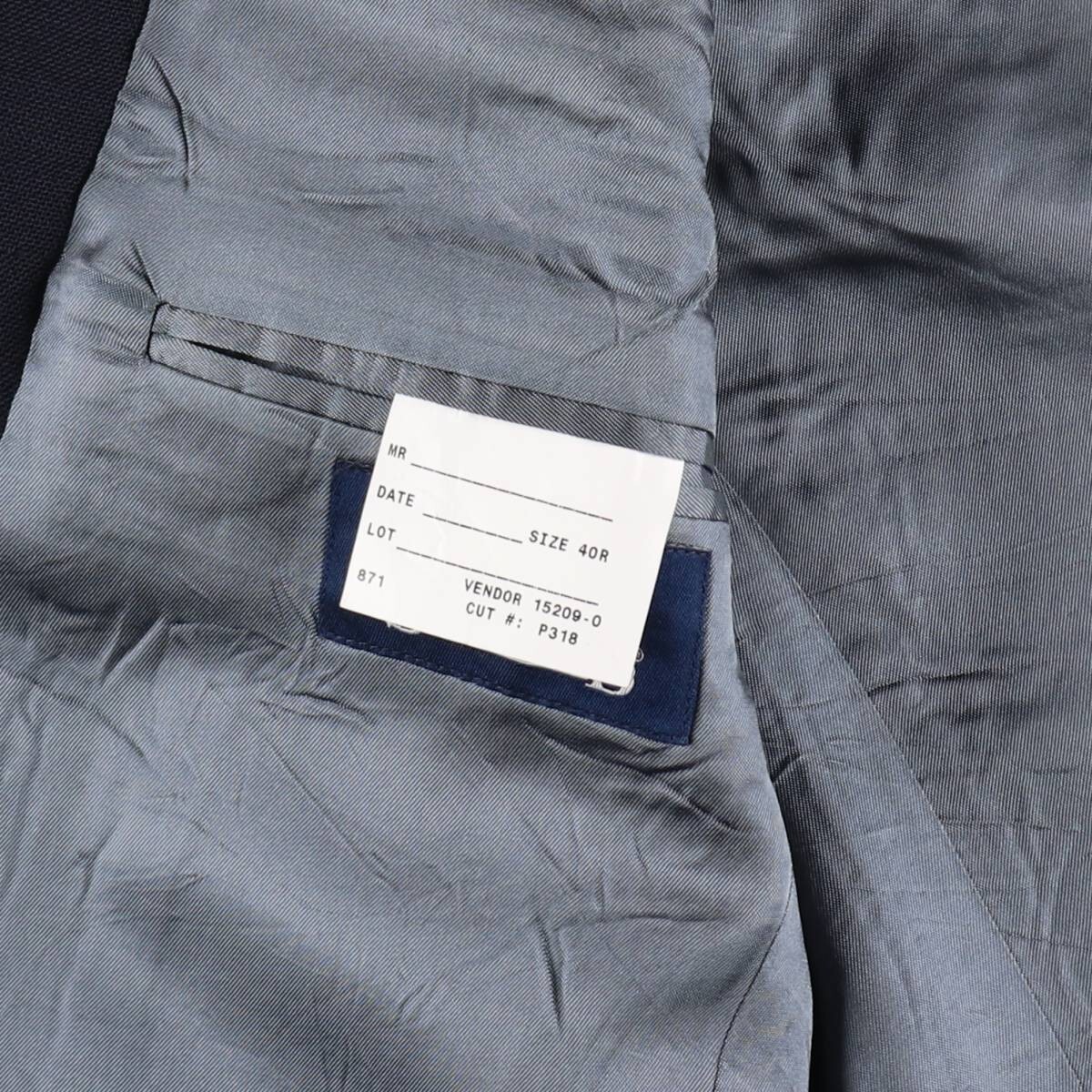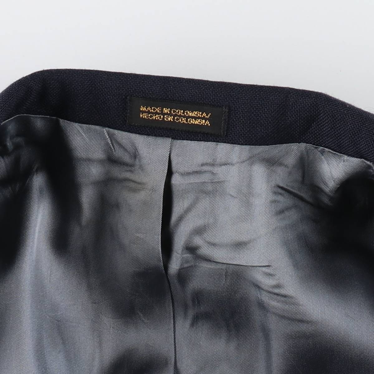 着用感: メンズL 表記サイズ: 40R 着丈: 81cm 身幅: 54cm 肩幅: 49.5cm 袖丈: 60cm ラペル幅: 8.5cm ![]() | ![]() ランク:C USEDですので使用感などございますが、まだまだご愛用していただけます。 古着という事をご理解の上ご注文よろしくお願いします。 【状態追記】 ●前、左袖内に汚れ ●後、左袖内に汚れ ●後、右腕に糸引き ●内側、肩・腰・裾・右腕に汚れ |