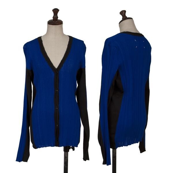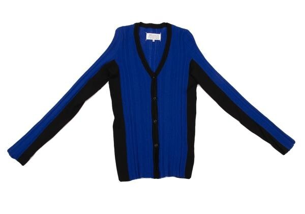 | メゾンマルタンマルジェラMaison Martin Margiela 1 コットンレーヨンバイカラーニットカーディガン 黒青L |