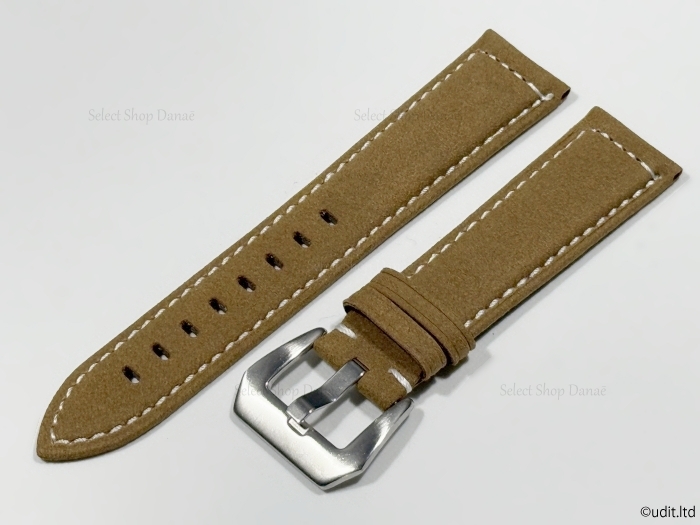 ラグ幅24mm 腕時計用レザーベルト アースカラー ベージュ 時計用バンド ヘキサゴン尾錠付き LB106