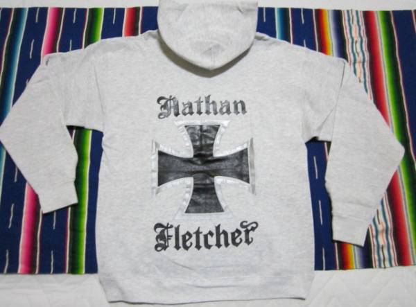 西海岸カリフォルニア サンクレメンテ、エアリアルサーフィンのパイオニア クリスチャン・フレッチャー の実弟 ネイザン・フレッチャー シグナチャー 1991年製、アイアンクロス ビンテージ オリジナル スウェットパーカー MADE IN USA