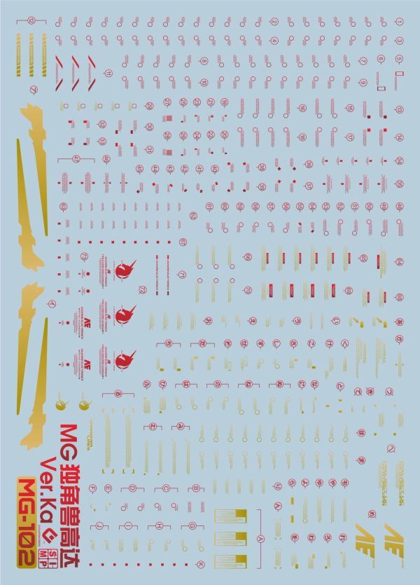 MG-102GD ユニコーンガンダムVer.Ka 用 DIY 水転写式デカール 金色