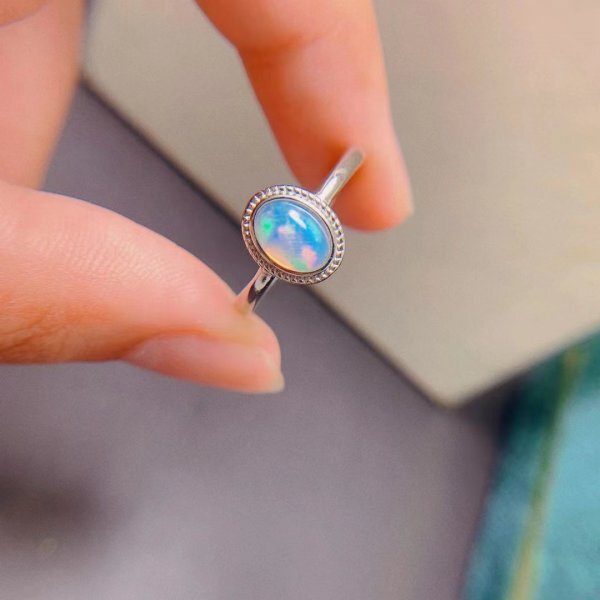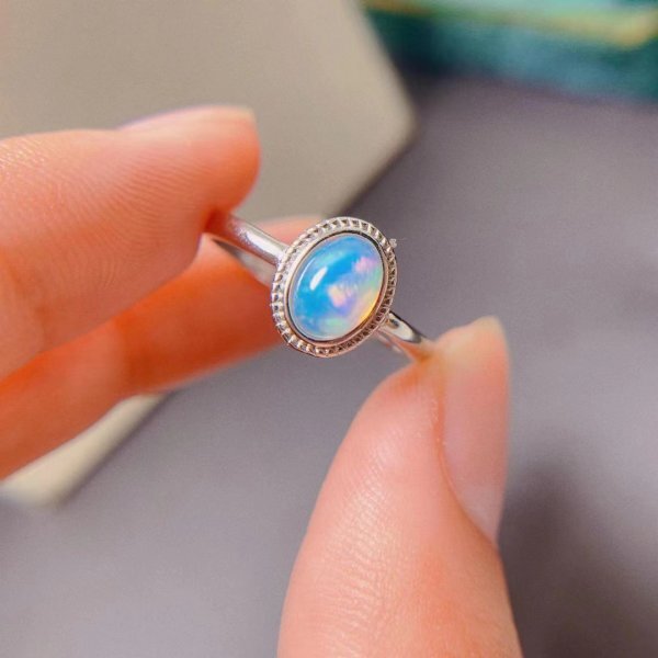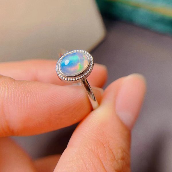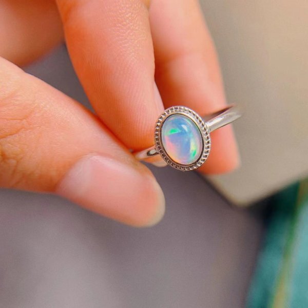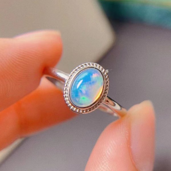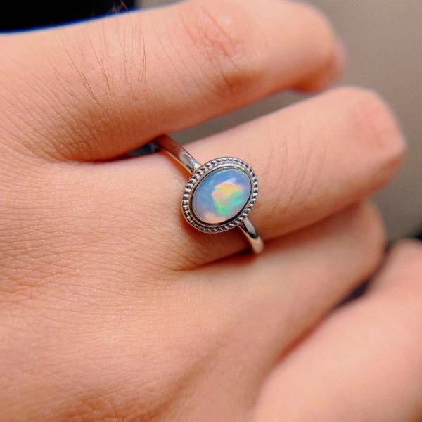 100% 天然ホワイトオパールのシルバーリング、5×7mm、日常着の925シルバー、ゴールドメッキ