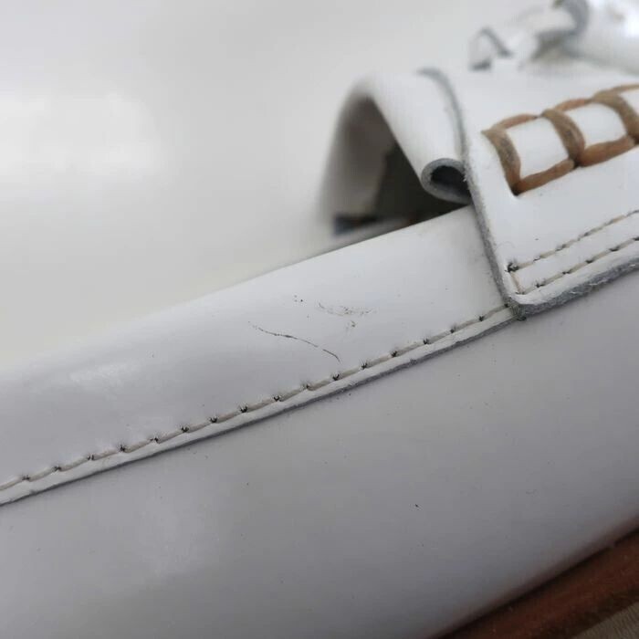 | 新品・未使用品 ※素材特有・展示による微細な擦れや小傷、保管・梱包に伴う皺等はご了承ください。 ※左足アッパー外側に薄汚れ、右足アッパー履き口付近に僅かな色移りがございます。(画像8・9枚目参照) 予めご了承下さい。 | ||||
