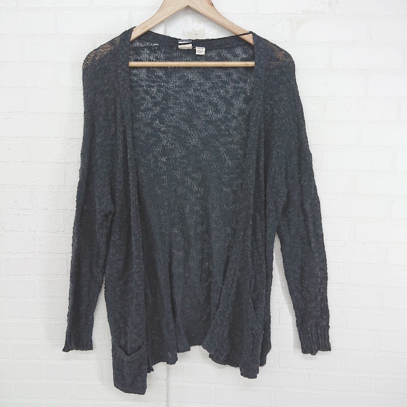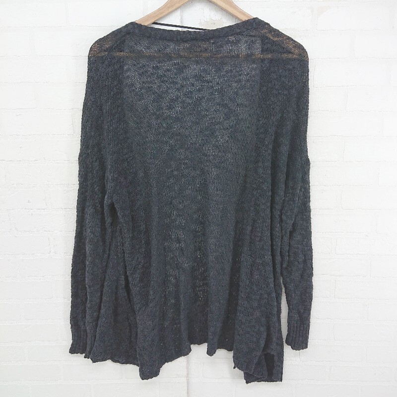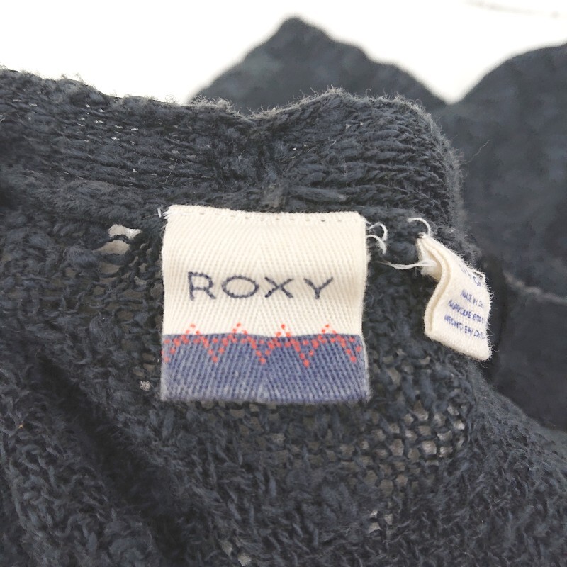 ◇ Roxy ロキシー コットンニット 透かし編み 長袖 カーディガン サイズ S ダークグレー レディース E