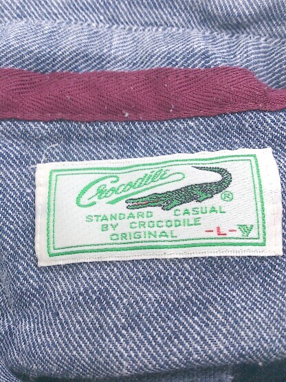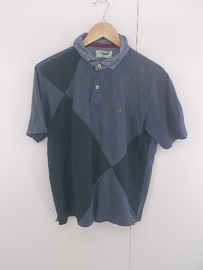 ◇ CROCODILE クロコダイル カジュアル ロゴ 刺繍 大人 バイカラー 半袖 ポロシャツ サイズL ネイビー系 メンズ E