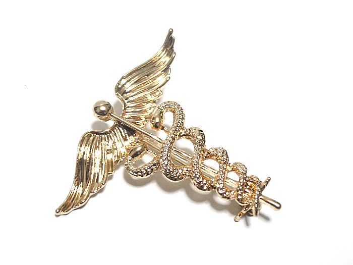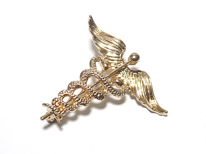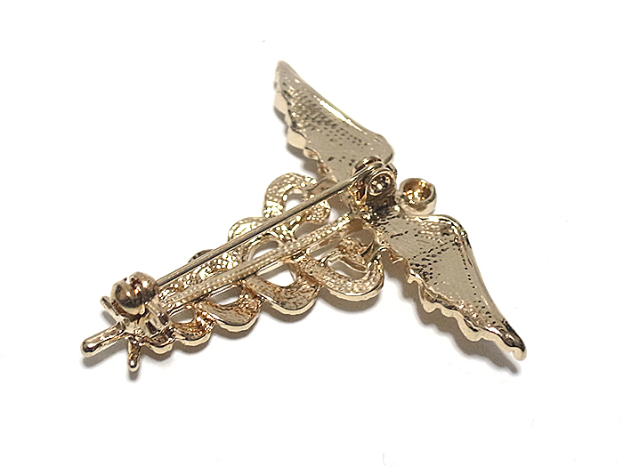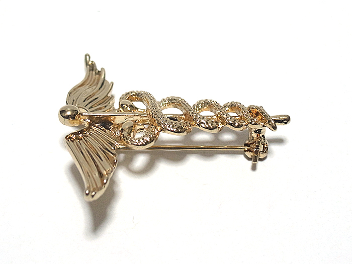 【ラペルピン★ブローチ】ケリュケイオン カドゥケウスの杖 ヘルメス神 商業 交通 ゴールド pin-0686
