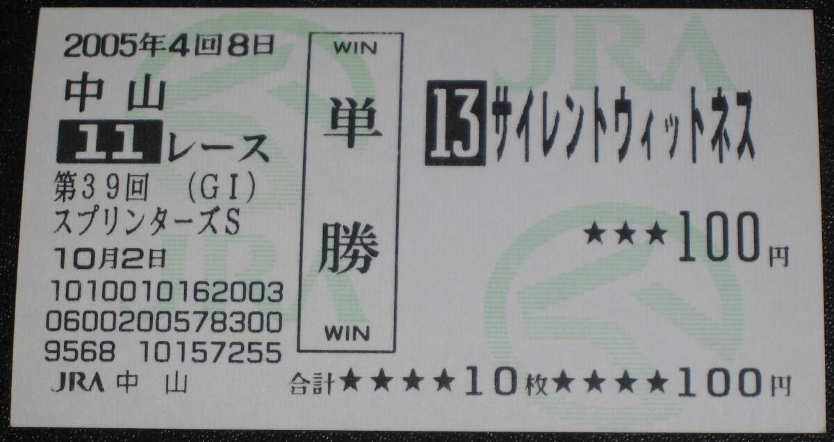 ■現地的中 サイレントウィットネス 2005年スプリンターズS 単勝馬券