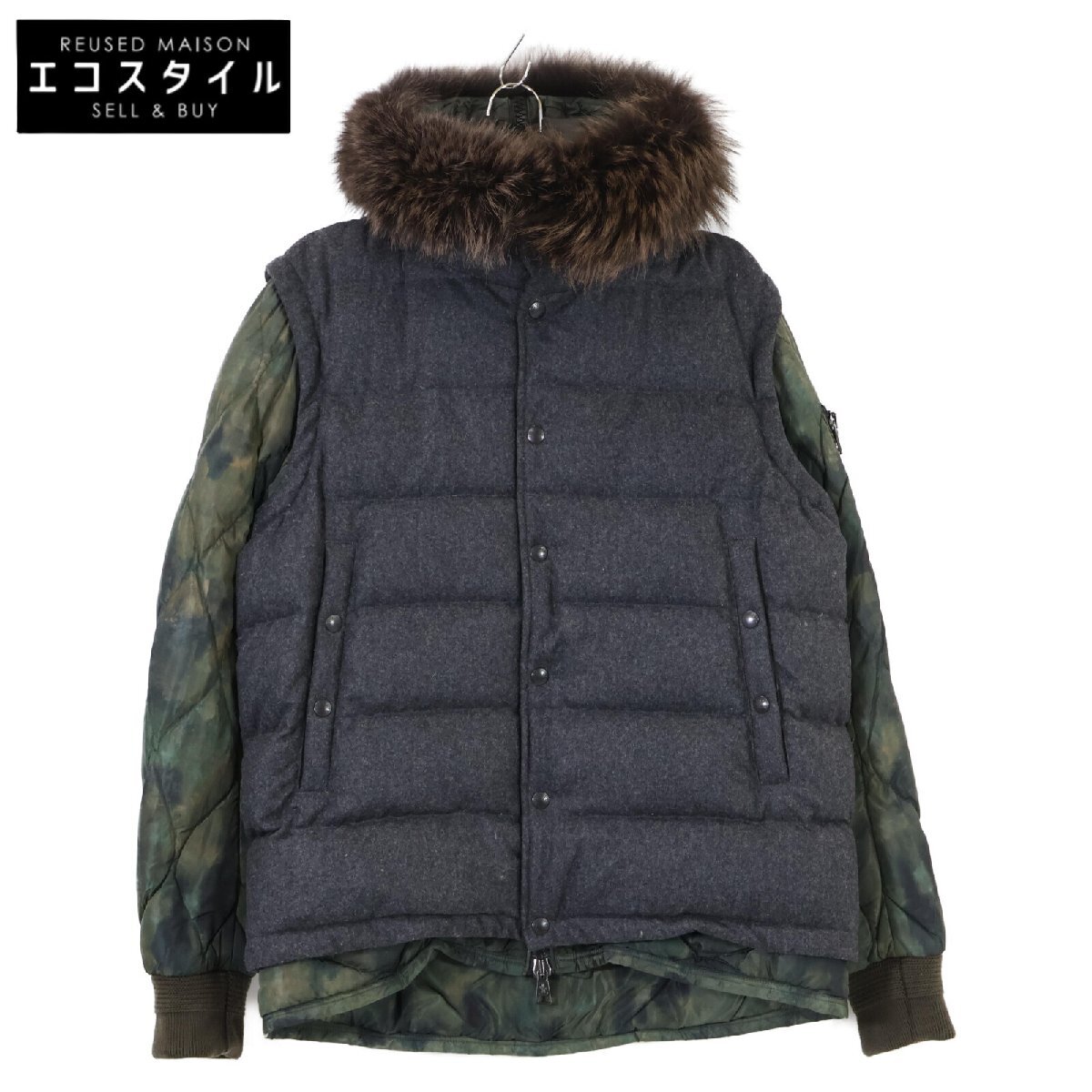 国内正規/ MONCLER モンクレール DEJAN ベストドッキング ファー付フーディダウン ジャケット 3 グレー/カーキ メンズ