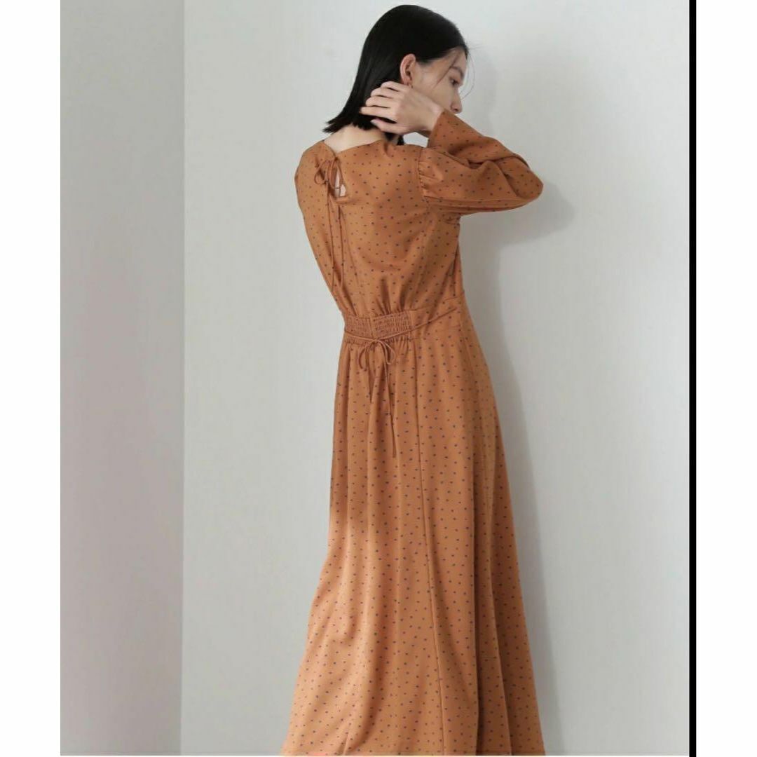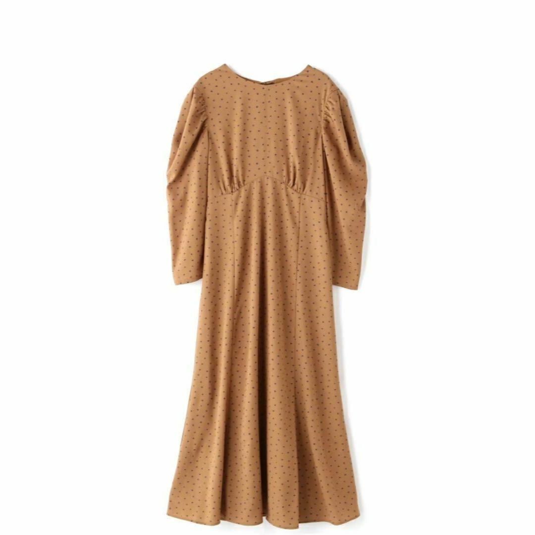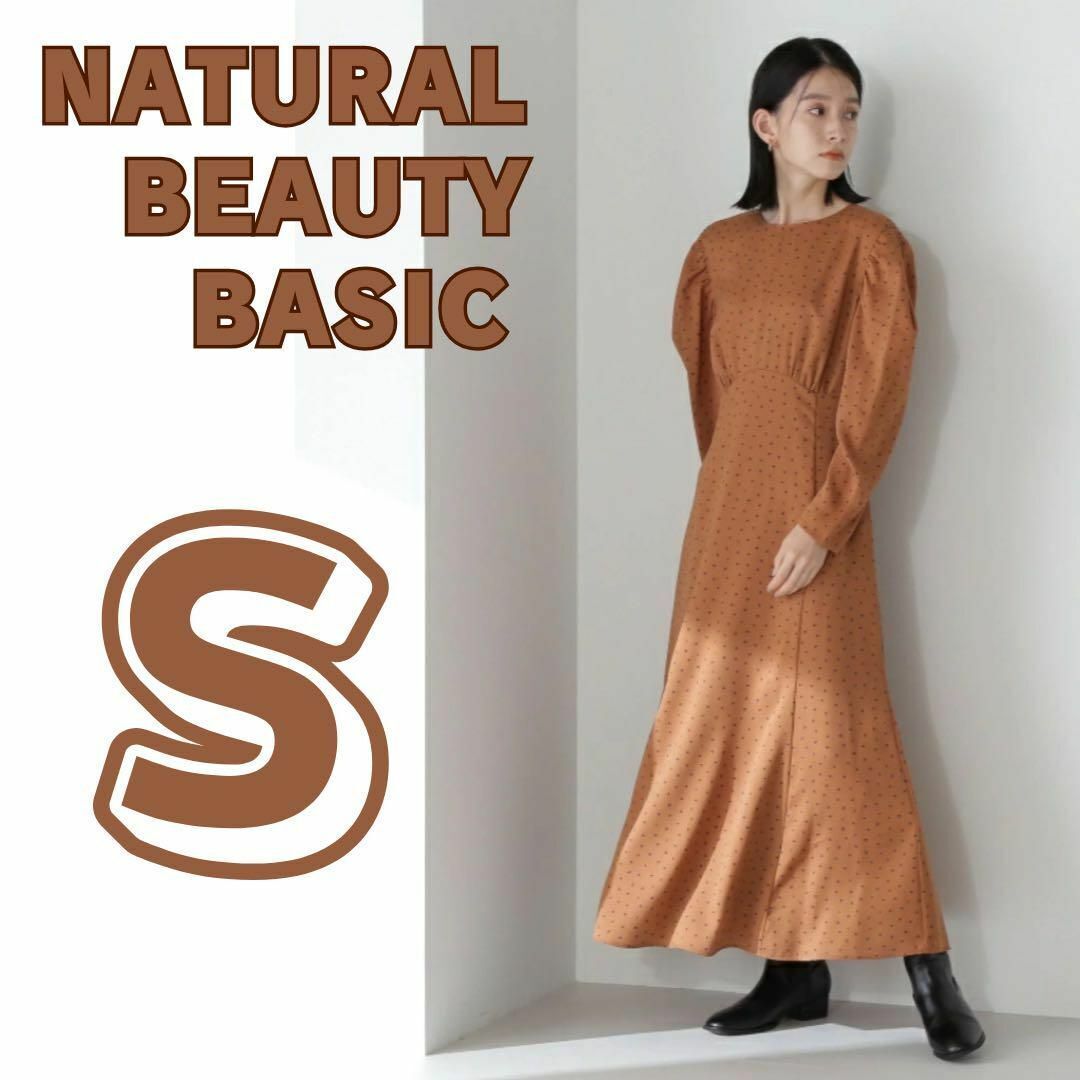 スクエアドットプリントマキシワンピース NATURAL BEAUTY BASIC ナチュラルビューティベーシック ワンピース ドレス ブラウン ロングワンピース 長袖 レディース
