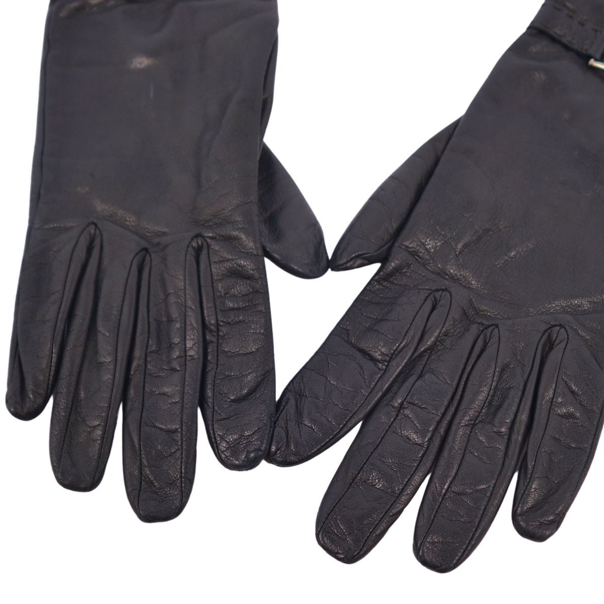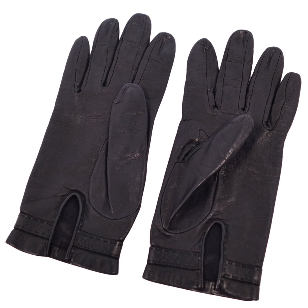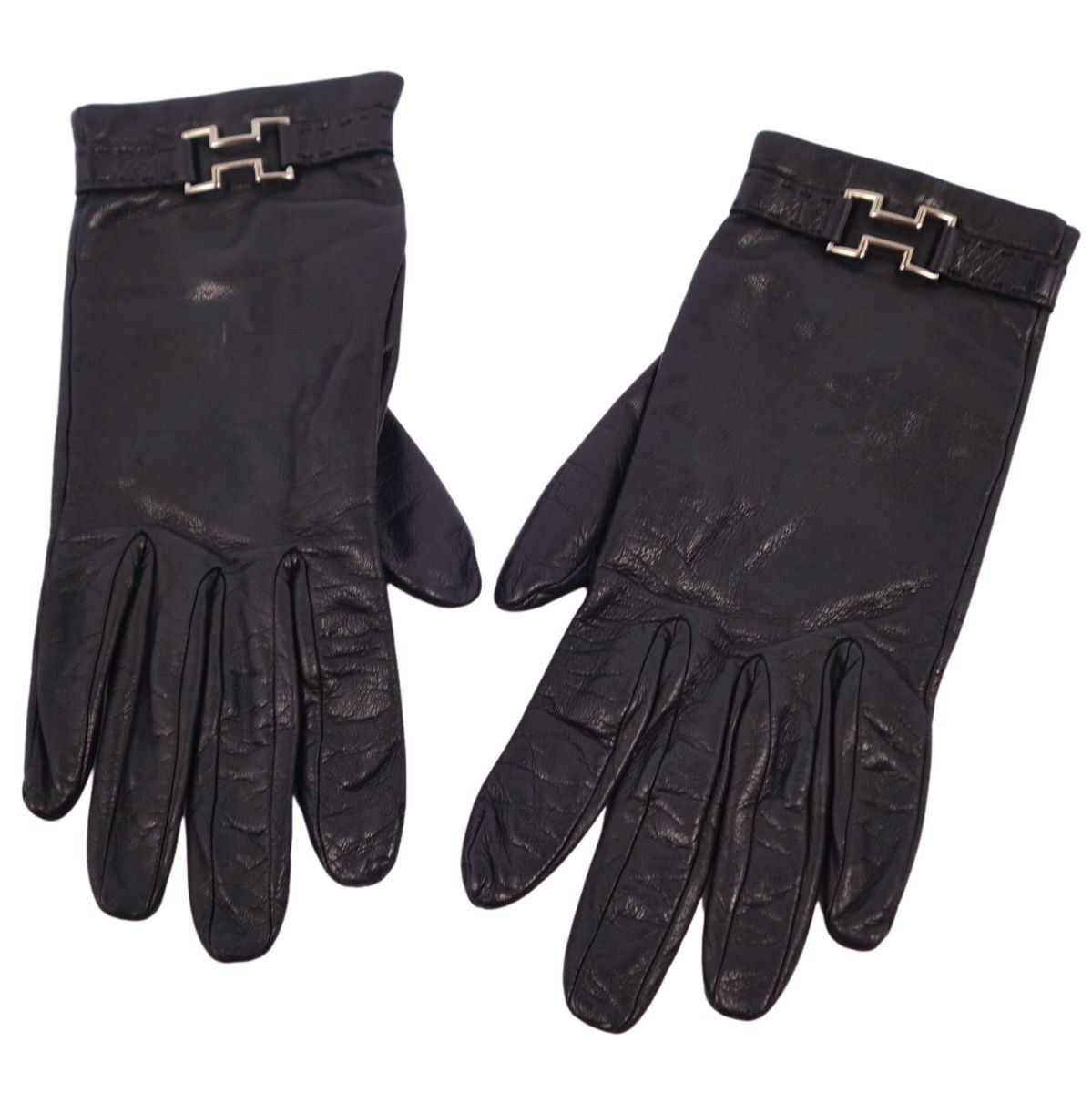 | 美品 エルメス HERMES 手袋 グローブ Hロゴ ラムレザー レディース フランス製 ブラック |