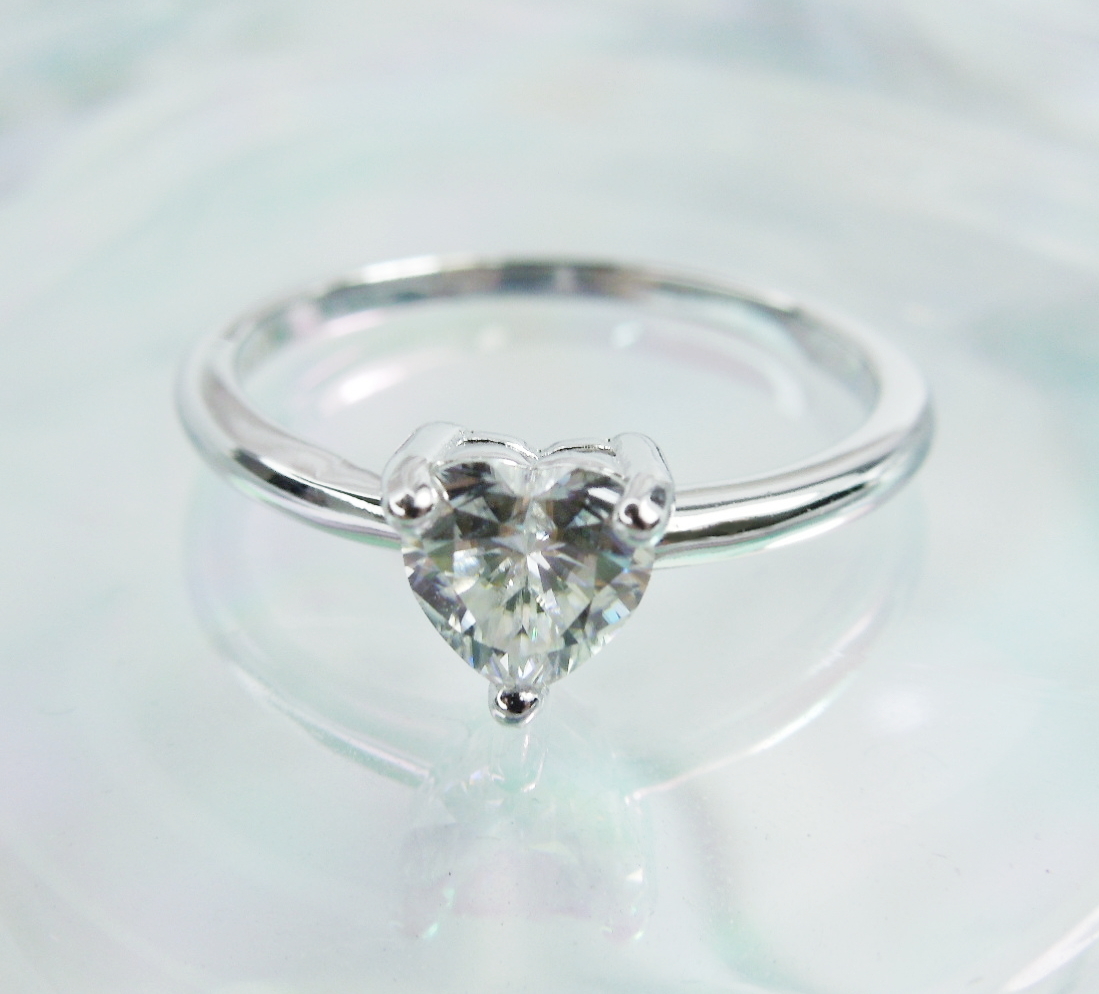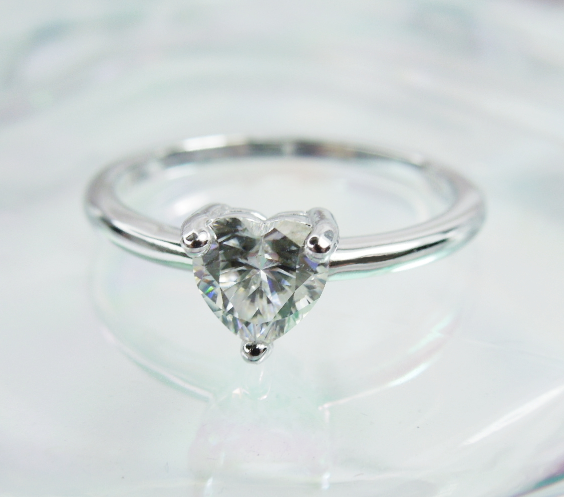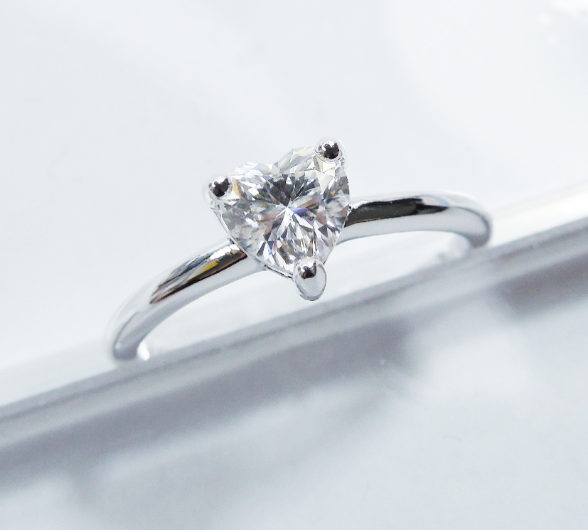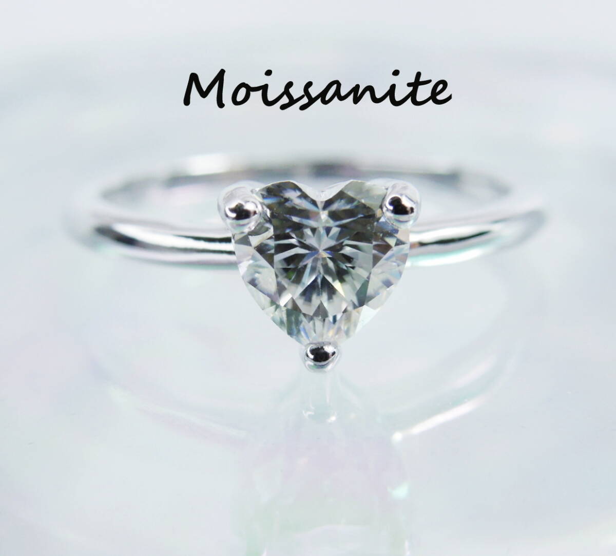 ハート型のかわいいモアサナイトリングです。1粒リングの為、様々な服装に合わせやすく、さりげなく可愛く手元を彩ってくれます。