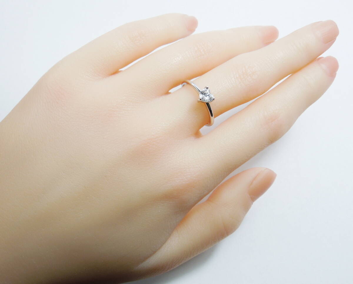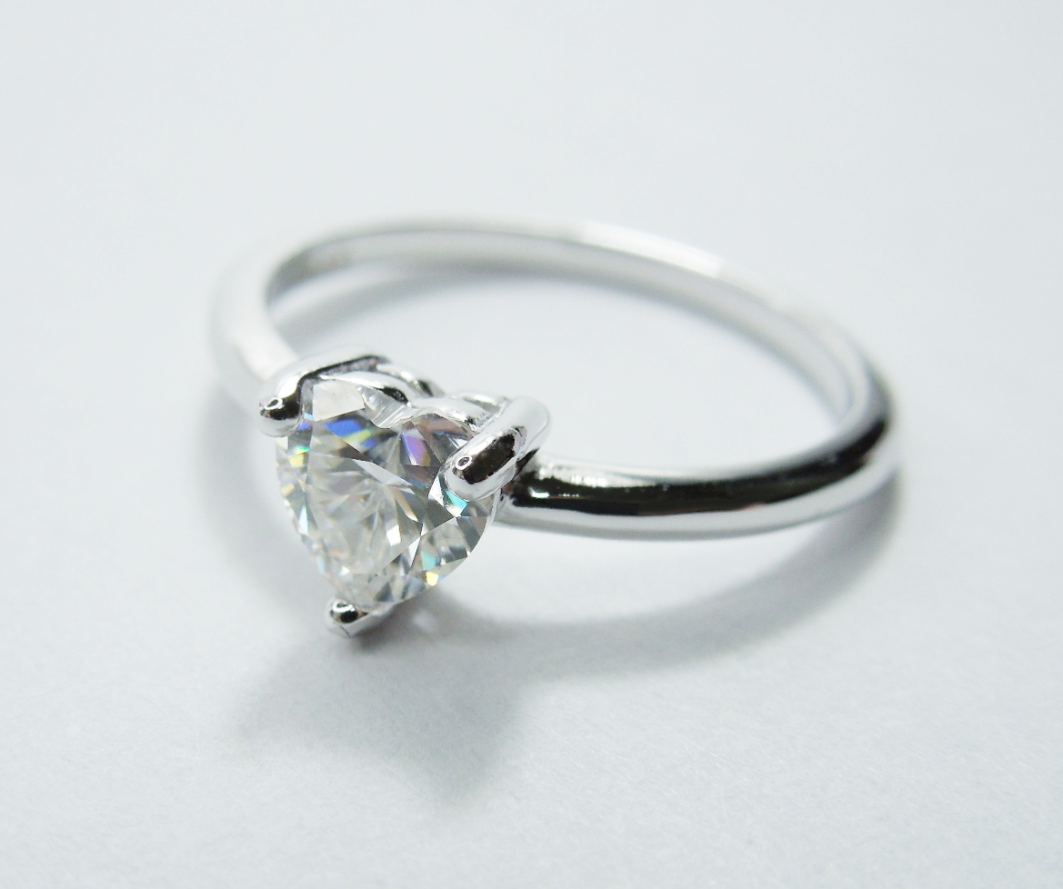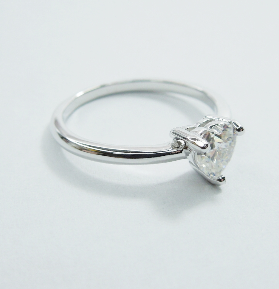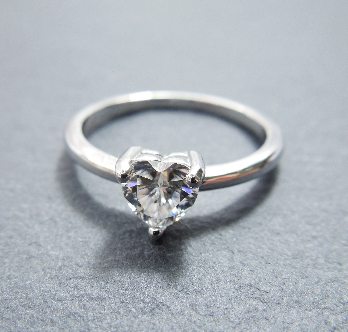 ハート型のかわいいモアサナイトリングです。1粒リングの為、様々な服装に合わせやすく、さりげなく可愛く手元を彩ってくれます。