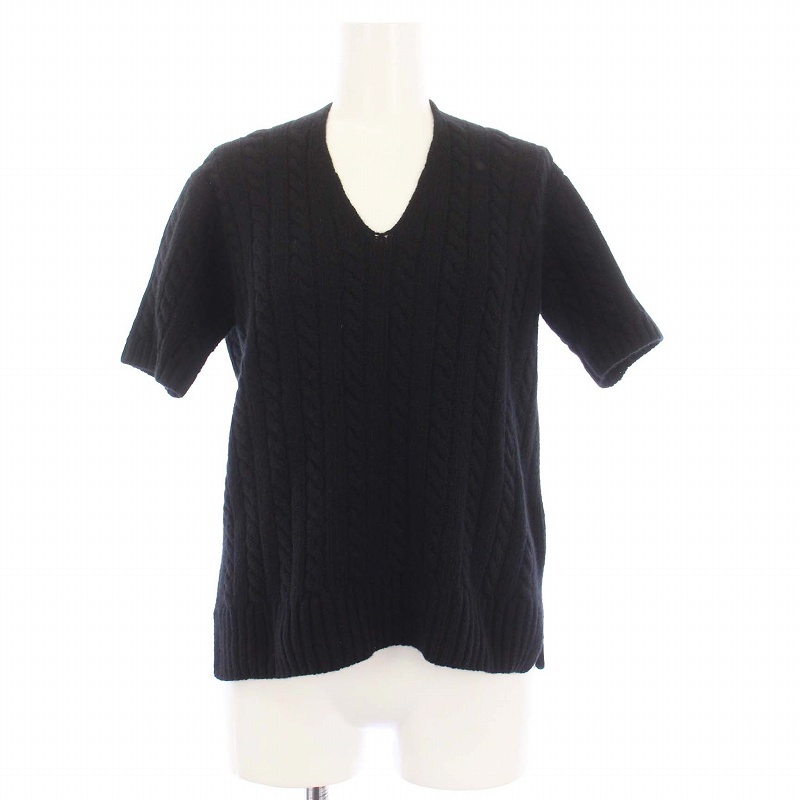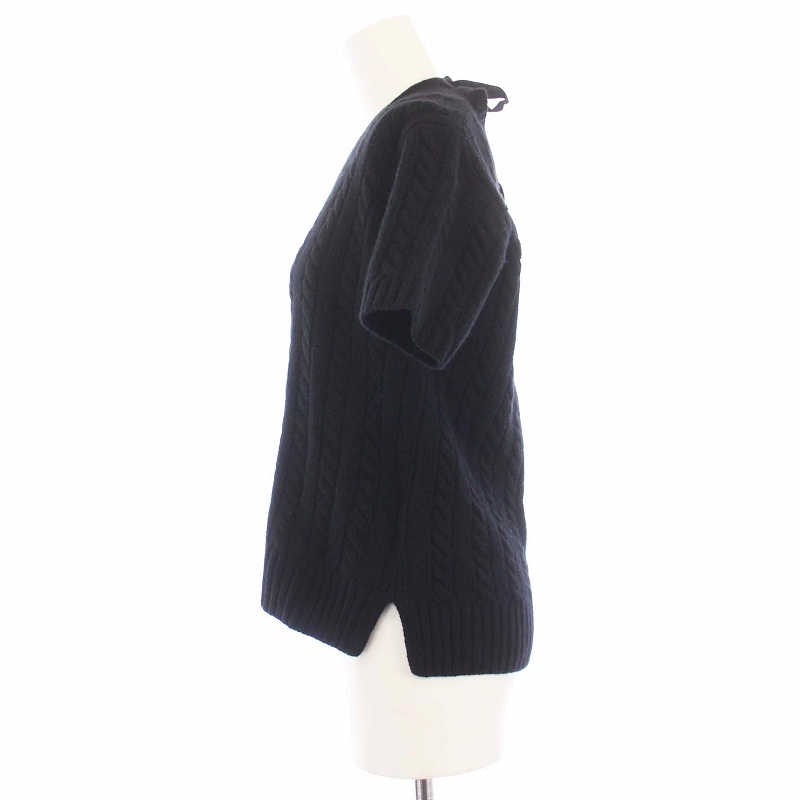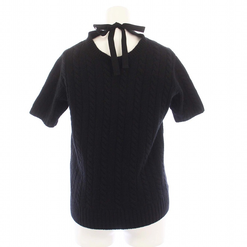 プラダ PRADA ニット セーター 半袖 リボン カシミヤ混 40 M 黒 ブラック /KH レディース