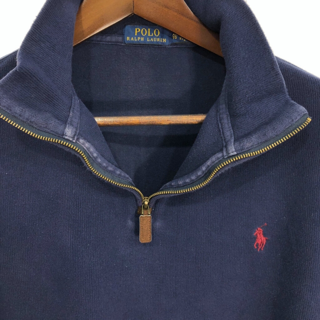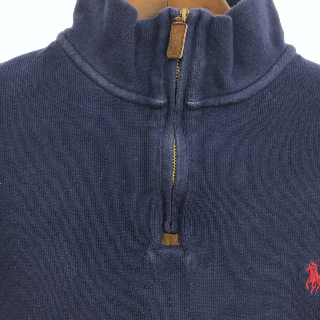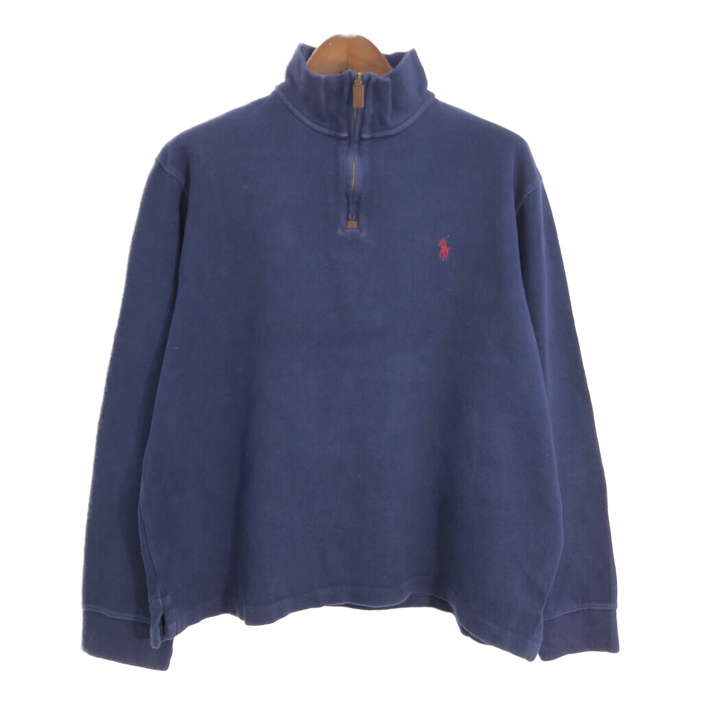 | [商品管理番号] T2169 [ブランド] Polo by Ralph Lauren/ポロ ラルフローレン [サイズ] XL [実寸サイズ] 肩幅:約51cm 着丈:約68cm 身幅:約67cm 袖丈:約63cm [主な素材] 表地 : コットン [色] ネイビー [仕様] ハーフジップ コットンセーター [状態] 特記事項:色褪せ、毛羽立ち | |||