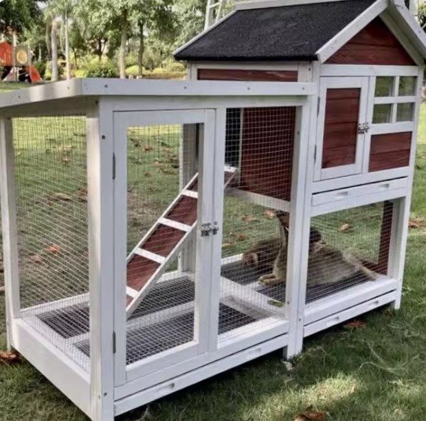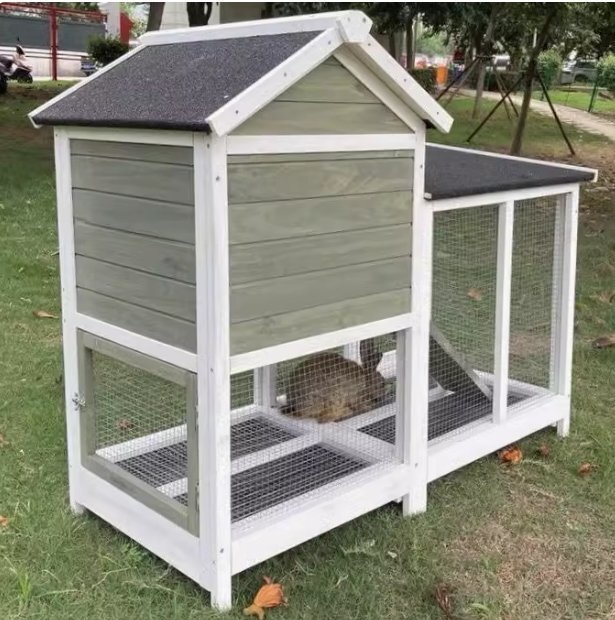 3.屋外チキンハウスは、家禽に十分な居住スペースとランニングスペースを提供するために、メインハウスとランニングエリアの2つのスペースに分かれています。 2~3匹のウサギを収容できます。ペット用のスロープを備えて設計されていますリビングスペースの上部と下部に簡単にアクセスできます.