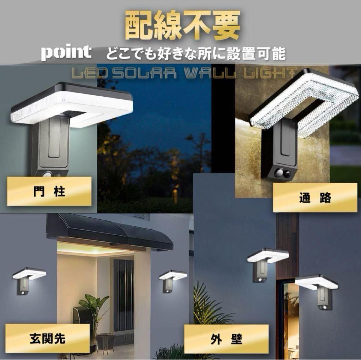 このLEDウォールライトは、高効率のソーラーパネルを搭載しており、5〜8時間の充電で最大36時間の点灯が可能です。日中にしっかりと充電し、夜間の照明を確保します。