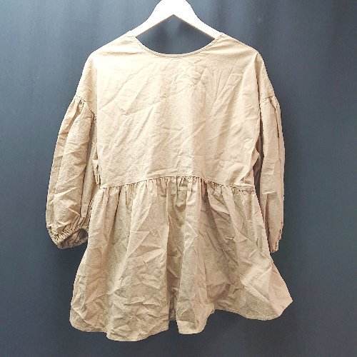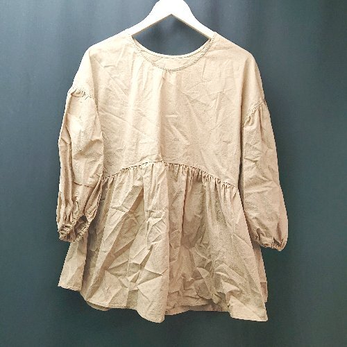 ◇ Deux Amour カジュアル パフすり ギャザー 七分袖 チュニック サイズM-L キャメル レディース E