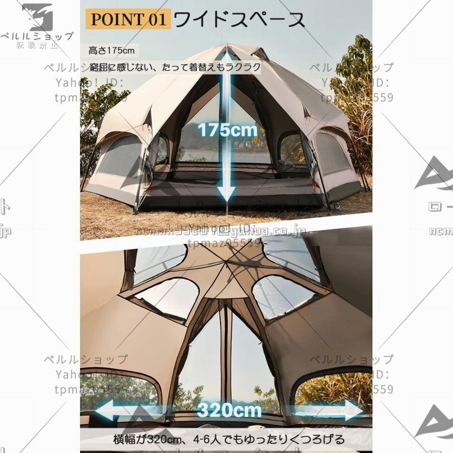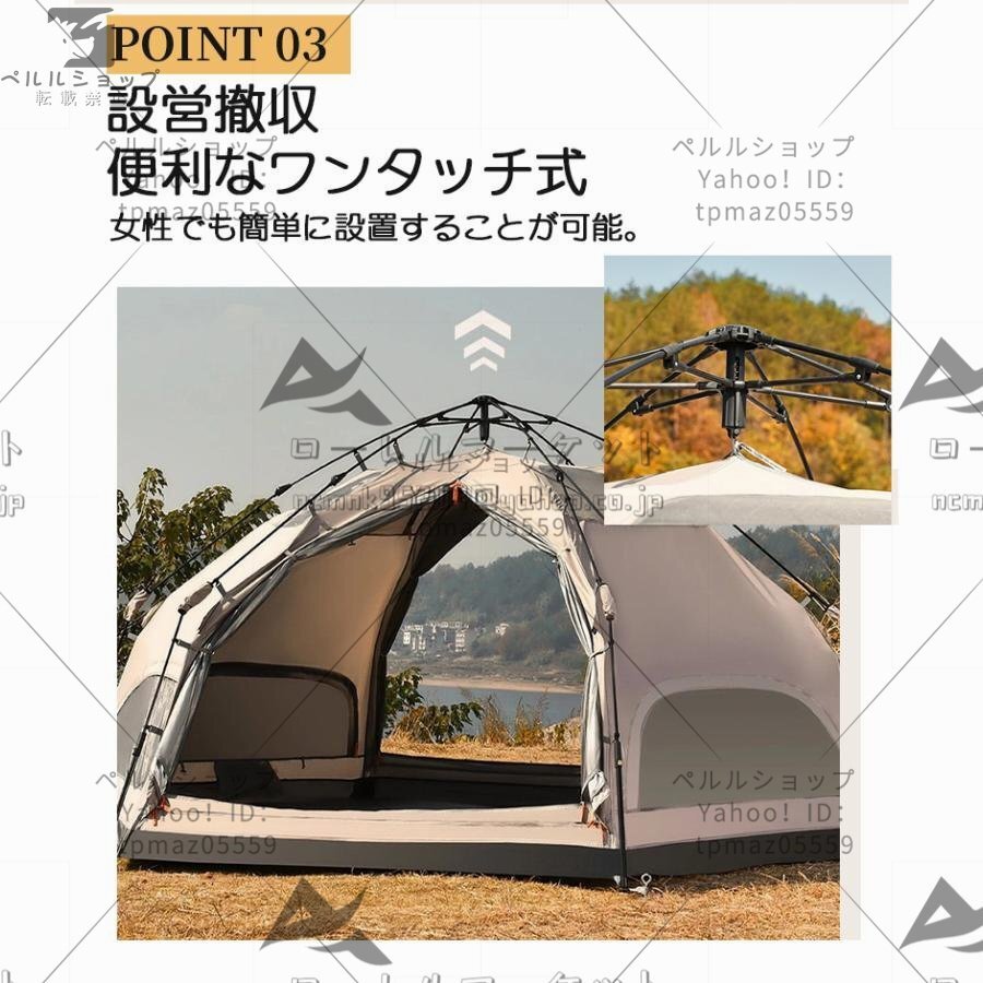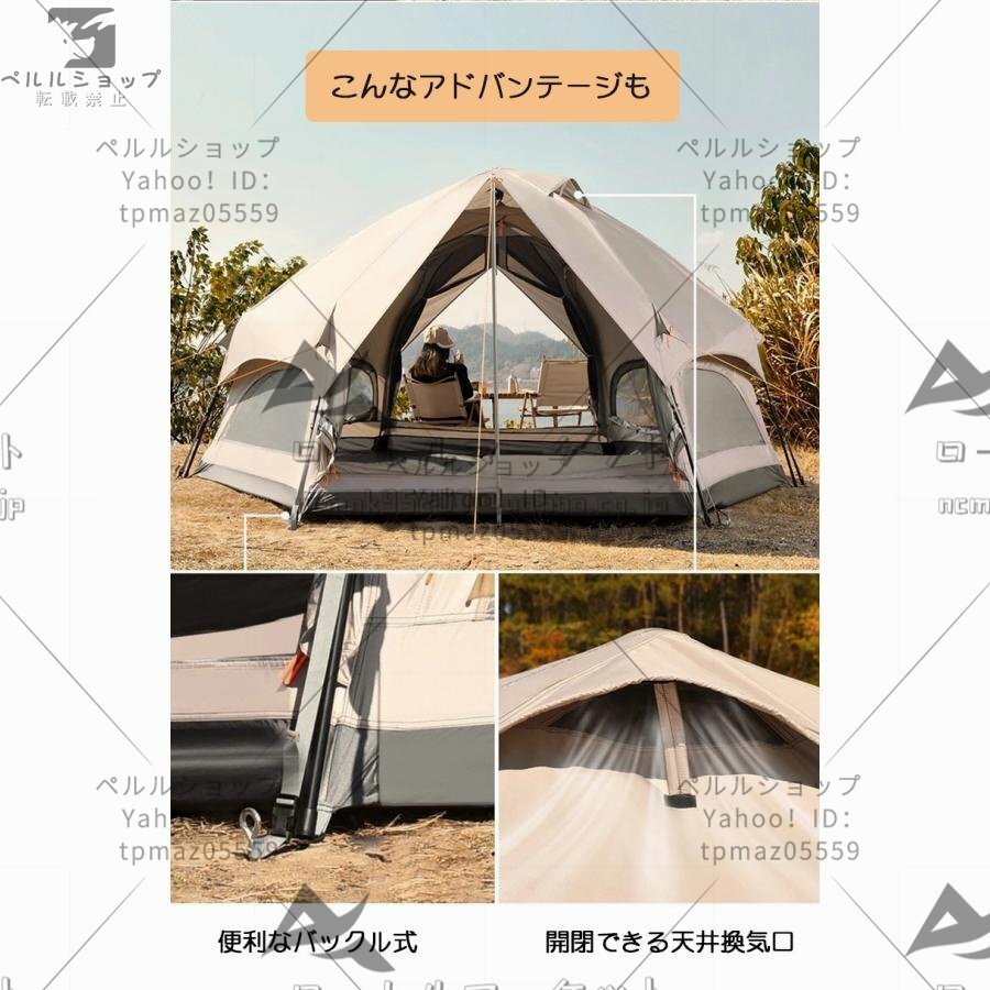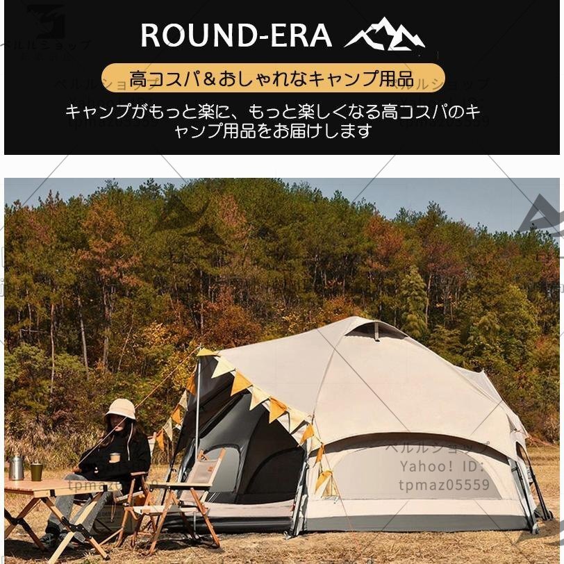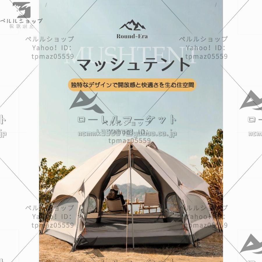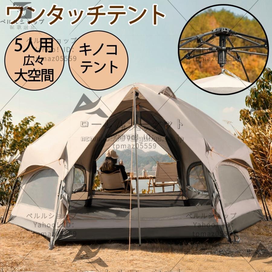 大型 ドーム型テント ワンタッチテント 5人用 キノコテント キャンプテント ファミリーテント ポール付 簡単組立 耐水 UVカット